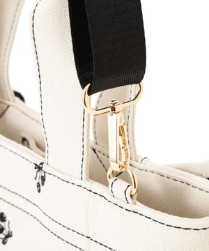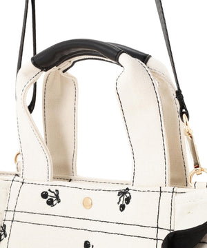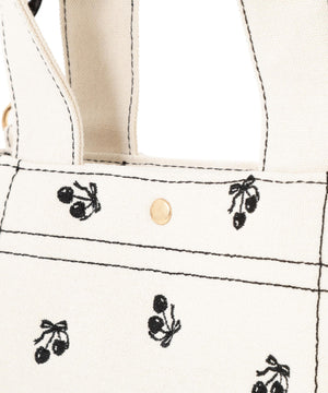 大人可愛い刺しゅうが映えるオリジナルCherryシリーズ。人気のフリルトートにチェリーの総柄刺しゅうをあしらい、ブラックやレッドの単色刺しゅうで甘すぎない可愛さに仕上げています。ワントーンにまとめることでスタイリングに取り入れやすく、キャンバス素材でデイリー使いしやすいのもポイント。ショルダーストラップ付きの2way仕様です。※撮影時照明の関係により、色味が違って見える場合がございます。