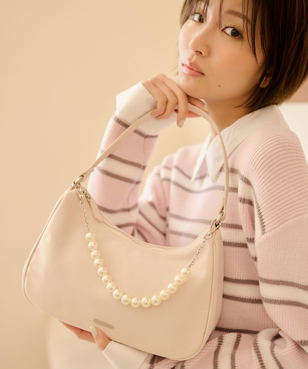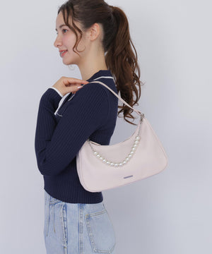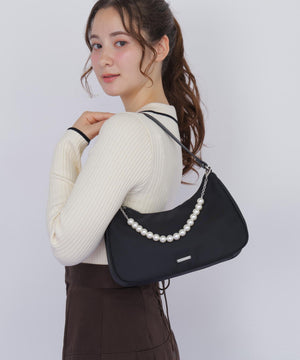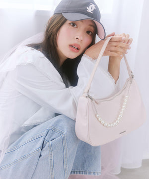 トレンド感のあるハーフムーンシルエットが魅力のコンパクトバッグ。滑らかでつるっとした素材感が洗練された印象を演出します。パール調のストラップは取り外し可能。ミニマルなサイズ感で、デイリーからお出かけシーンまで活躍。シンプルなボディなのでお持ちのチャームやスカーフを付けてアレンジを楽しむのもおすすめです。※撮影時照明の関係により、色味が違って見える場合がございます。