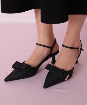シャープなポインテッドトゥが女性らしさを演出するパンプス。品のいい光沢感が特徴のグログラン素材を使用しており、きちんとしたシーンにもカジュアルにも似合う1足です。取り外しできるリボンパーツで印象を変えられるのもポイント。華奢な印象でありながら細いストラップで足元をホールドしてくれるので安心です。※撮影時照明の関係により、色味が違って見える場合がございます。