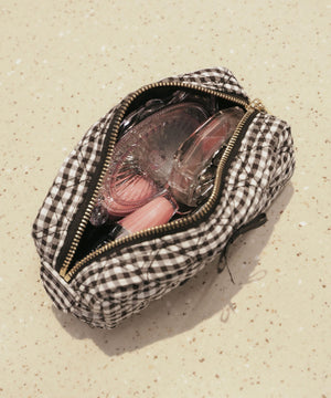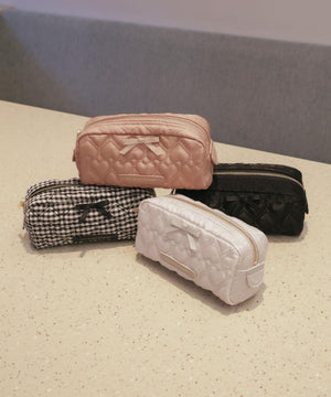 ハートモチーフのキルトが愛らしいJILL by JILL STUARTのポーチ。ロゴ入りの合皮パッチやリボンがアクセントになった可愛さを詰め込んだデザイン。刻印されたロゴ入りファスナーの引き手、内側は小物を入れるのに便利なポケット付きです。今回ギンガム柄が仲間いり。リップなどの収納はもちろん、筆箱としてもぴったりなサイズ感です。※撮影時照明の関係により、色味が違って見える場合がございます。