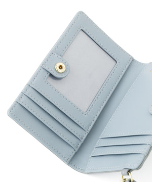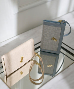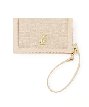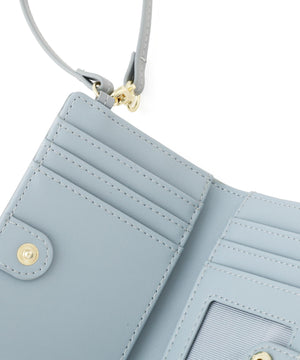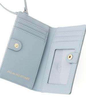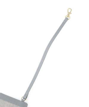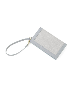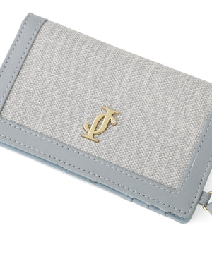 異素材コンビネーションがエレガントなフラグメントケース。表面感のあるシャンブレー素材となめらかなスムース合皮を組み合わせた上品なルックスが魅力です。カードや定期、カードキーなどを収納でき、二つ折りで中身が見えないところもポイント。ストラップと2つのポケット付きで、可愛さと利便性を両立したデザインです。※撮影時照明の関係により、色味が違って見える場合がございます。