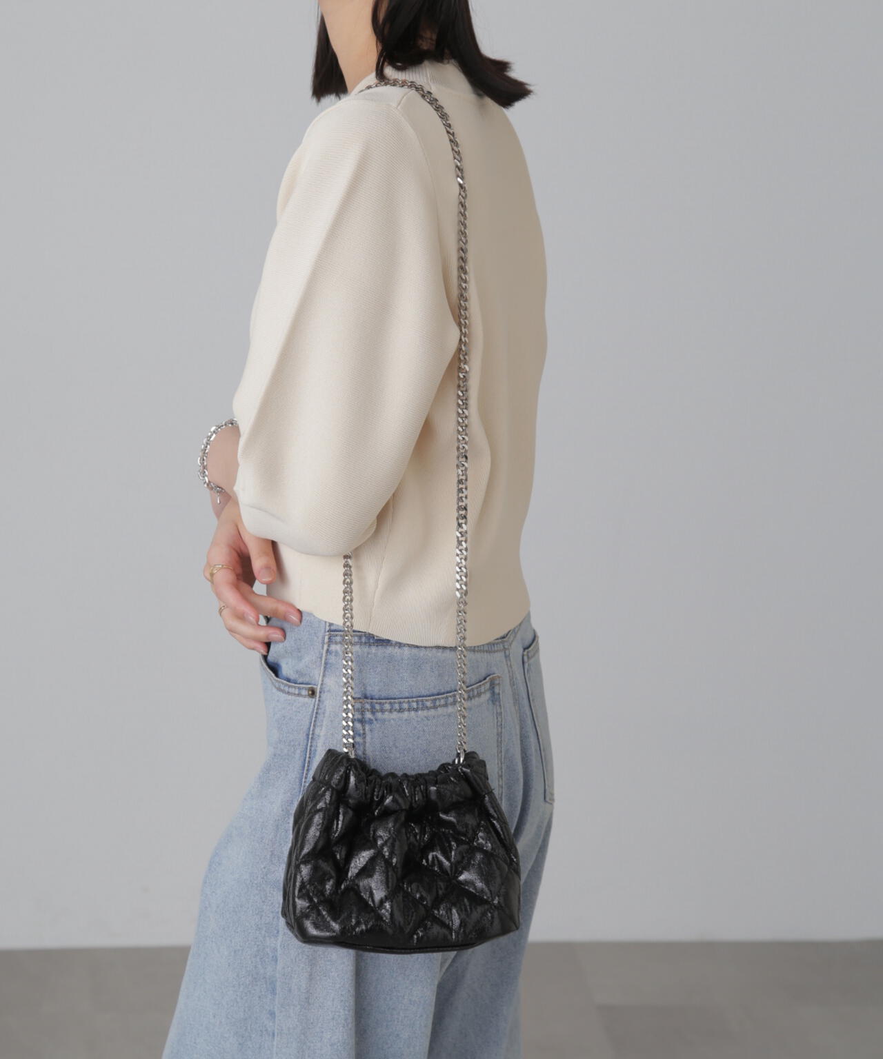 キルティング生地にチェーンが可愛らしく映え、カジュアルにもフェミニンにも使える、今季トレンドのバッグです。シンプルになりがちなコーデのポイントにぴったり。見た目以上に収納力があり普段使いからワンマイルなどのお出かけスタイルまで幅広く使えます。