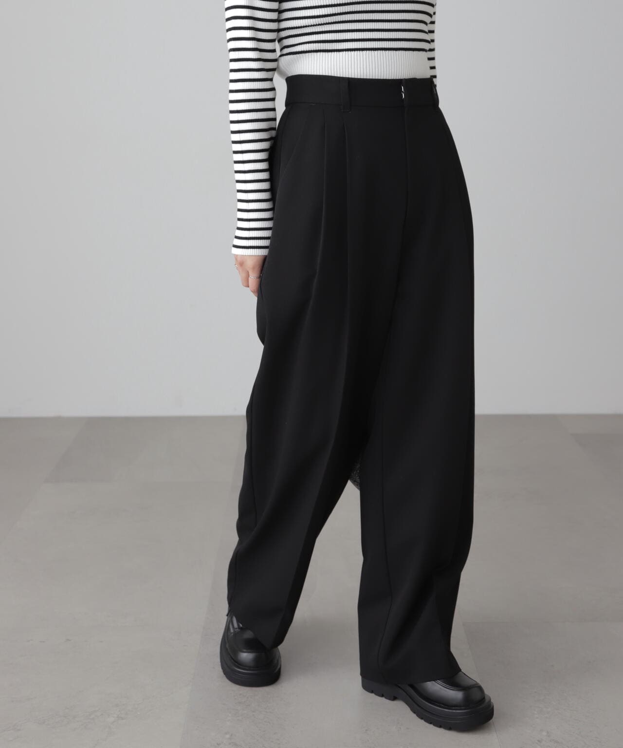 シルエットに拘ったツータックワイドパンツ。春夏でご好評をいただいたパンツをベースにややゆとりを持たせ、キレイめながらもカジュアルな雰囲気に仕上げています。ゆるっとしたシルエットの中にきちんと感があり、ONOFF問わず着ていただけます。コンパクトニットやブラウスなど幅広いトップスと相性が良く、オールシーズン着まわせるアイテム。無地2色、トレンドのピンストライプを加えた全3色展開です。