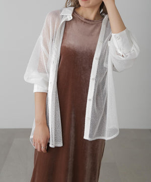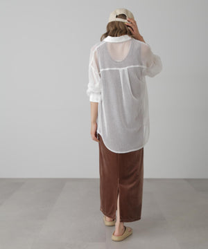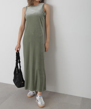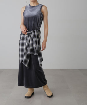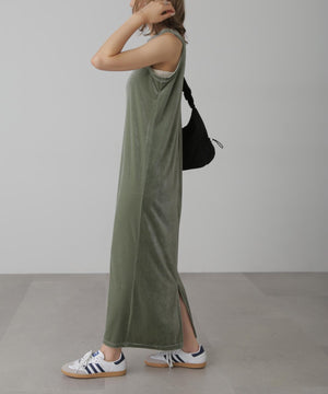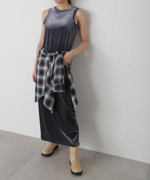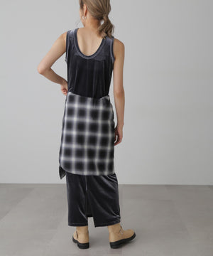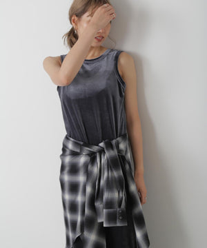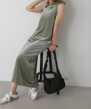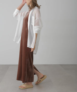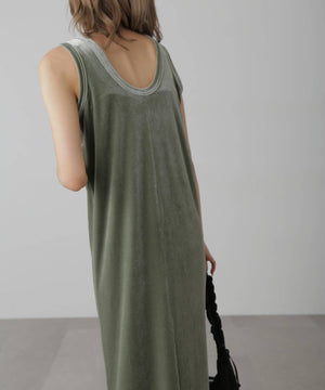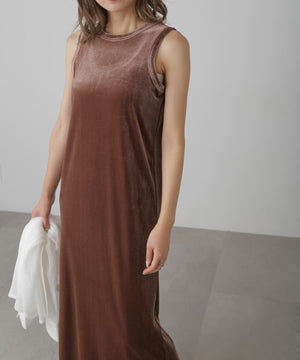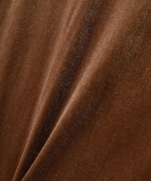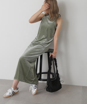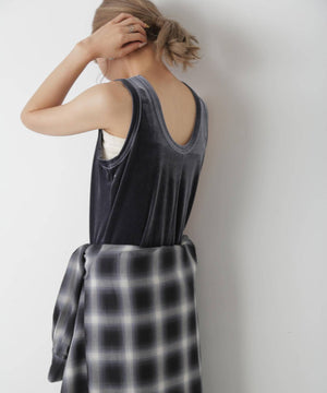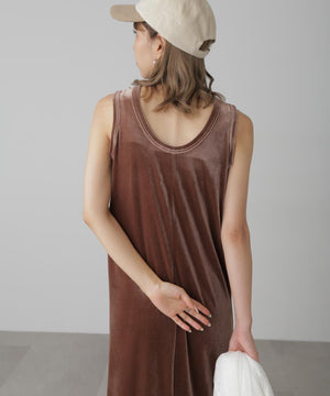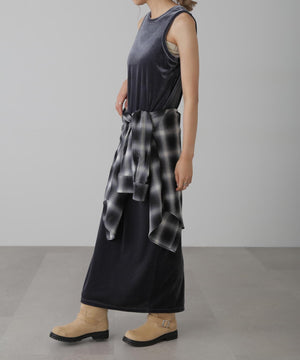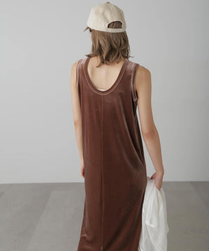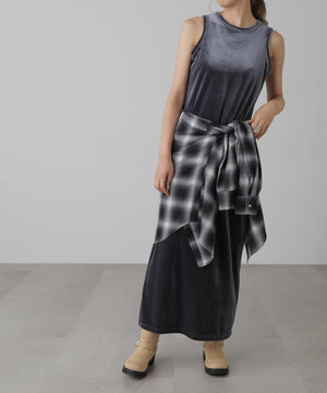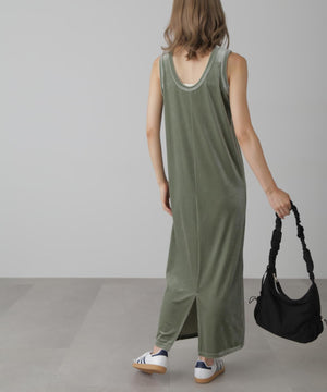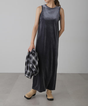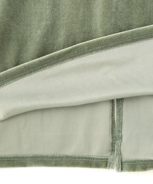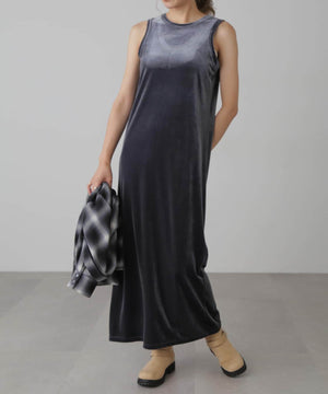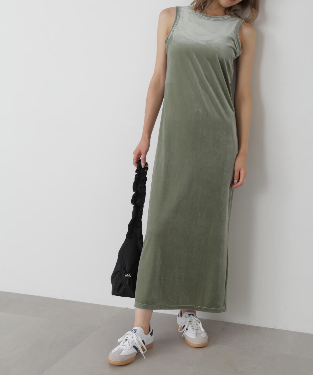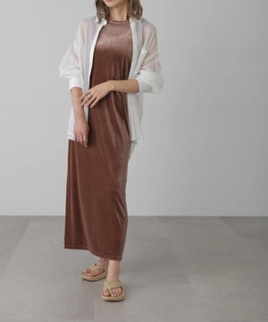 柔らかいベロア素材のアメリカンスリーブで抜け感のあるワンピース。光りすぎない微光沢で短めの毛足のベロアなので暑い時期からでも着ていただけます。バックネックは少し深めで抜け感をプラス。秋らしい素材なので秋におすすめのアイテム。古着ライクなオンブレチェックビッグシャツ(店舗商品番号131-4210035)を羽織ったり肩に巻いたりすればカジュアルで秋らしいスタイリングに。