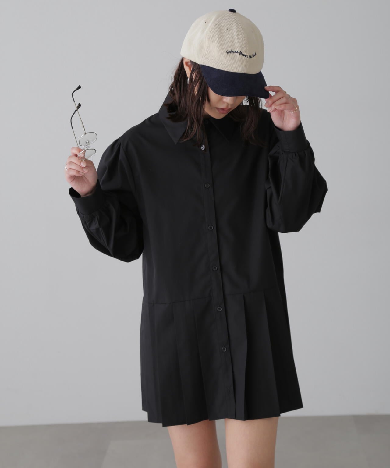 ロー切り替えが可愛いシャツミニワンピース。トレンドのロー切り替えを取り入れて、切り替え下はプリーツ仕様にしています。袖はボリュームスリーブにして可愛らしいディテールをプラス。一枚でブーツ合わせなどが可愛いです。ミニ丈が苦手な方は下にボトムスを合わせてレイヤードスタイルにしても◎。寒くなってきたらニットカーディガンなどを羽織るとロングシーズンご着用いただけます。
