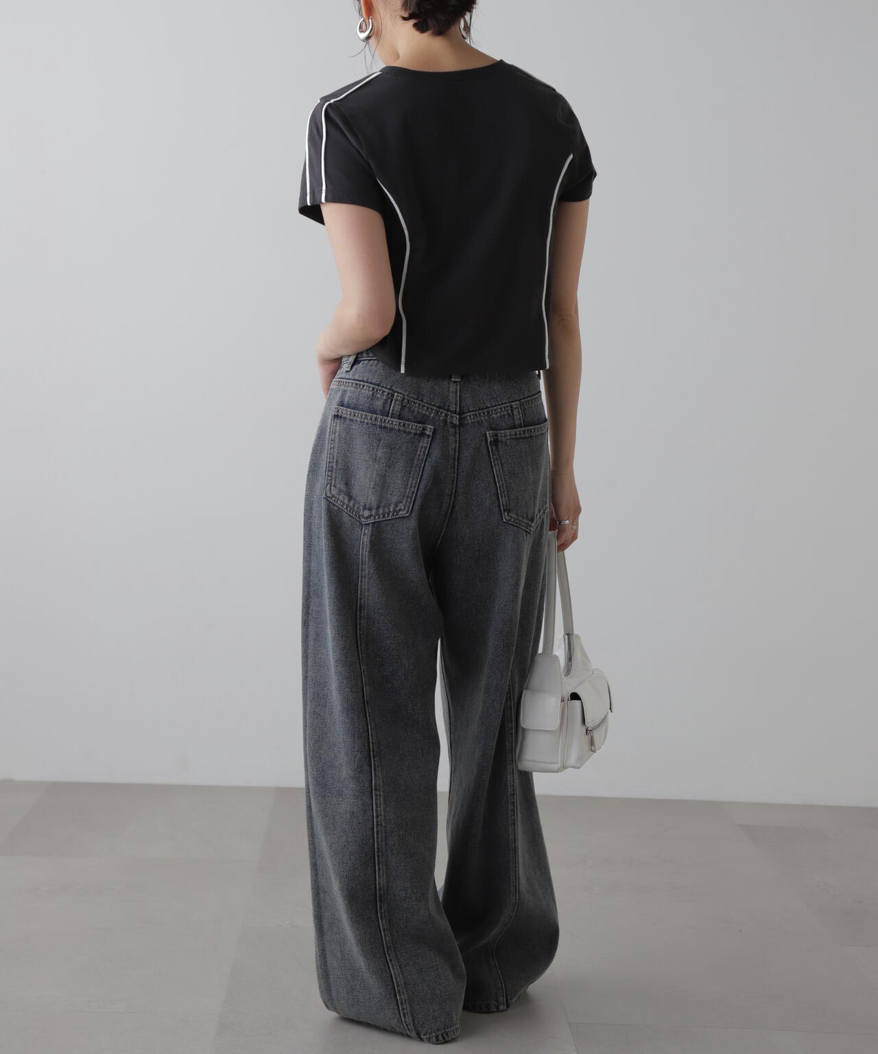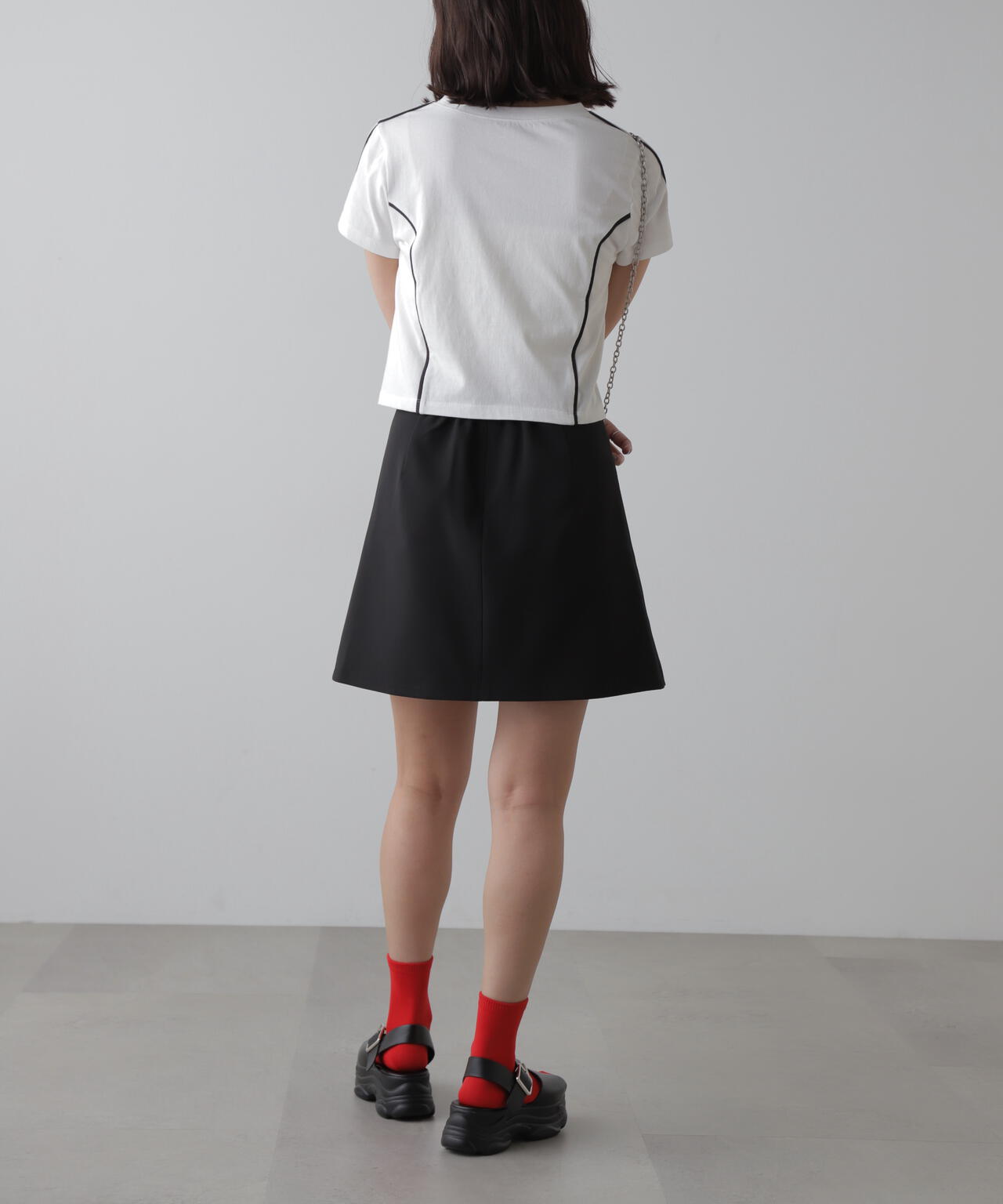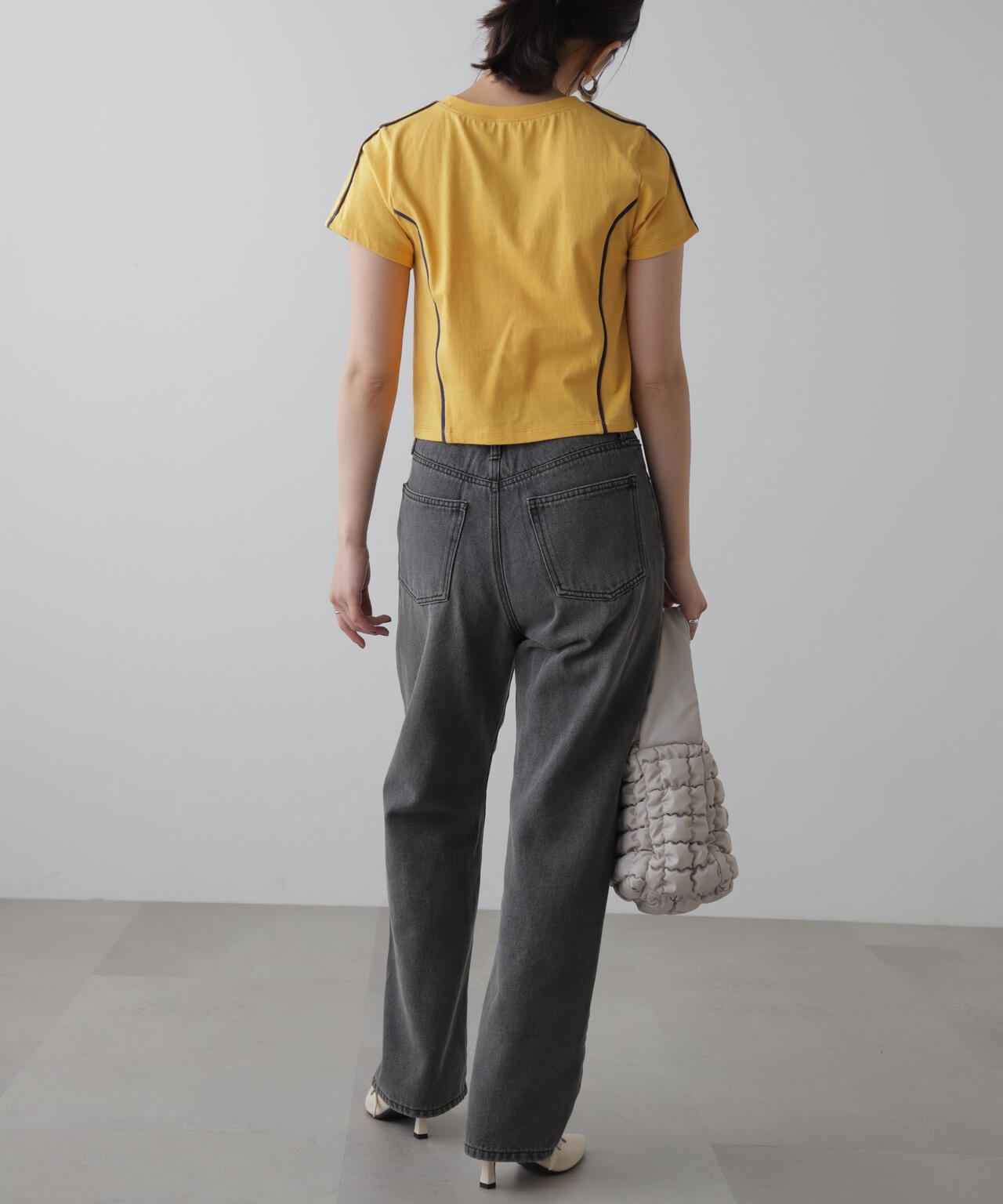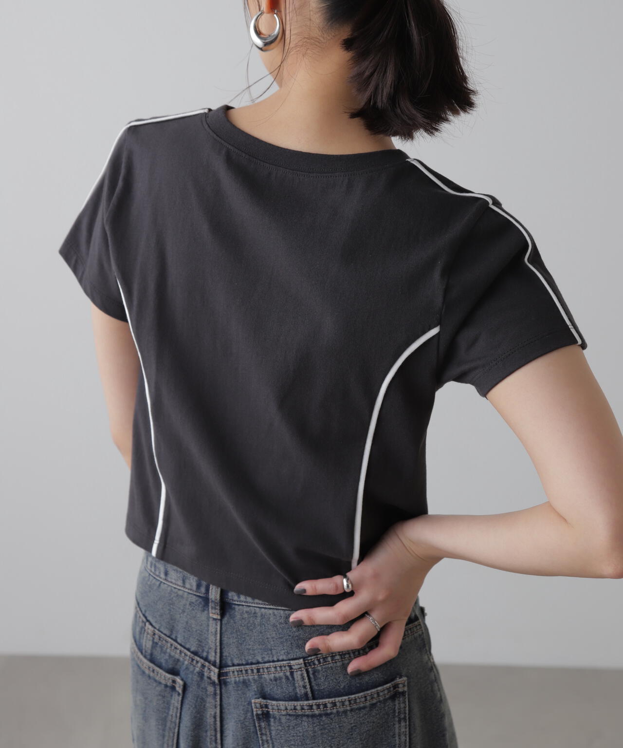 コンパクトなサイズ感のチビTにスポーツロゴを取り入れた一枚。細い配色パイピングラインを身頃と肩線に入れてアクセントに。サイズ感がとてもコンパクトなので、ダボっとしたボトムスがおすすめです。カジュアルな雰囲気のため、あえてフェミニンアイテムと合わせると今っぽく見せてくれます。※ロゴの意味、DAILYME 毎日の私