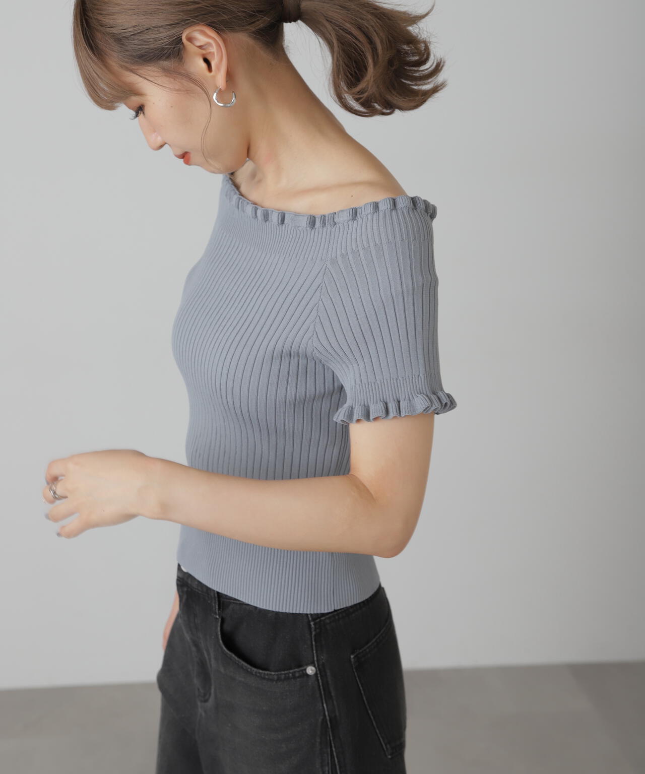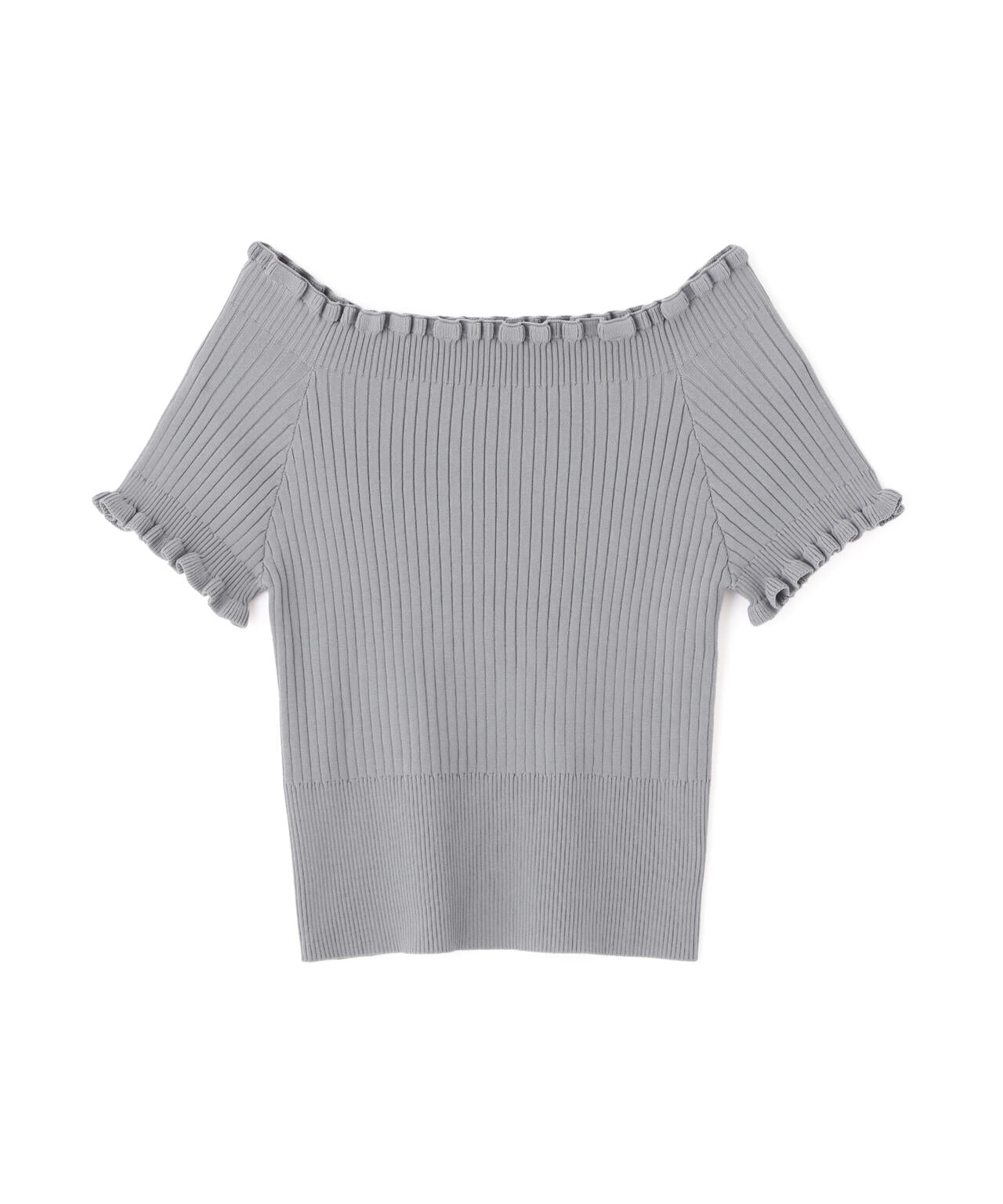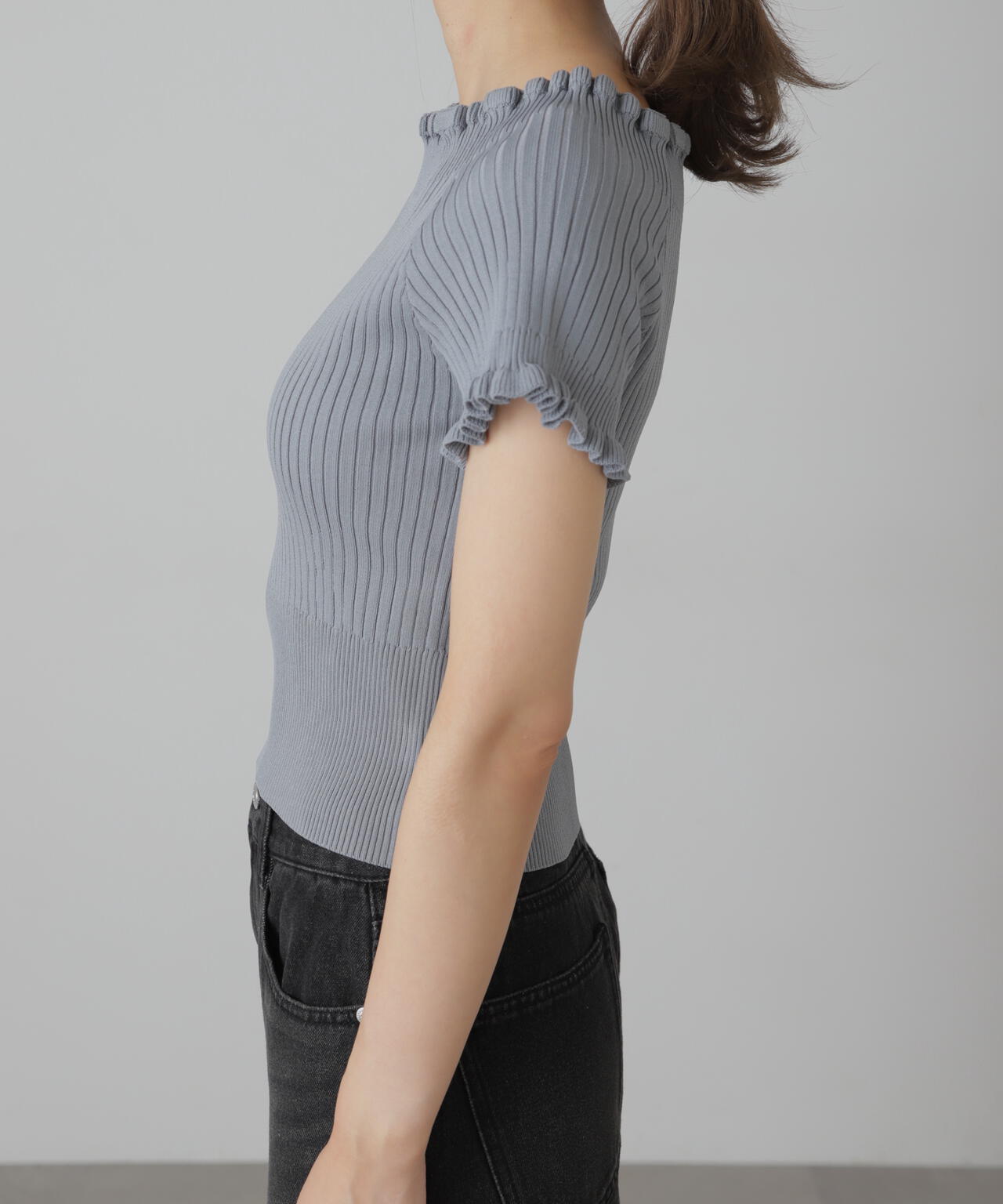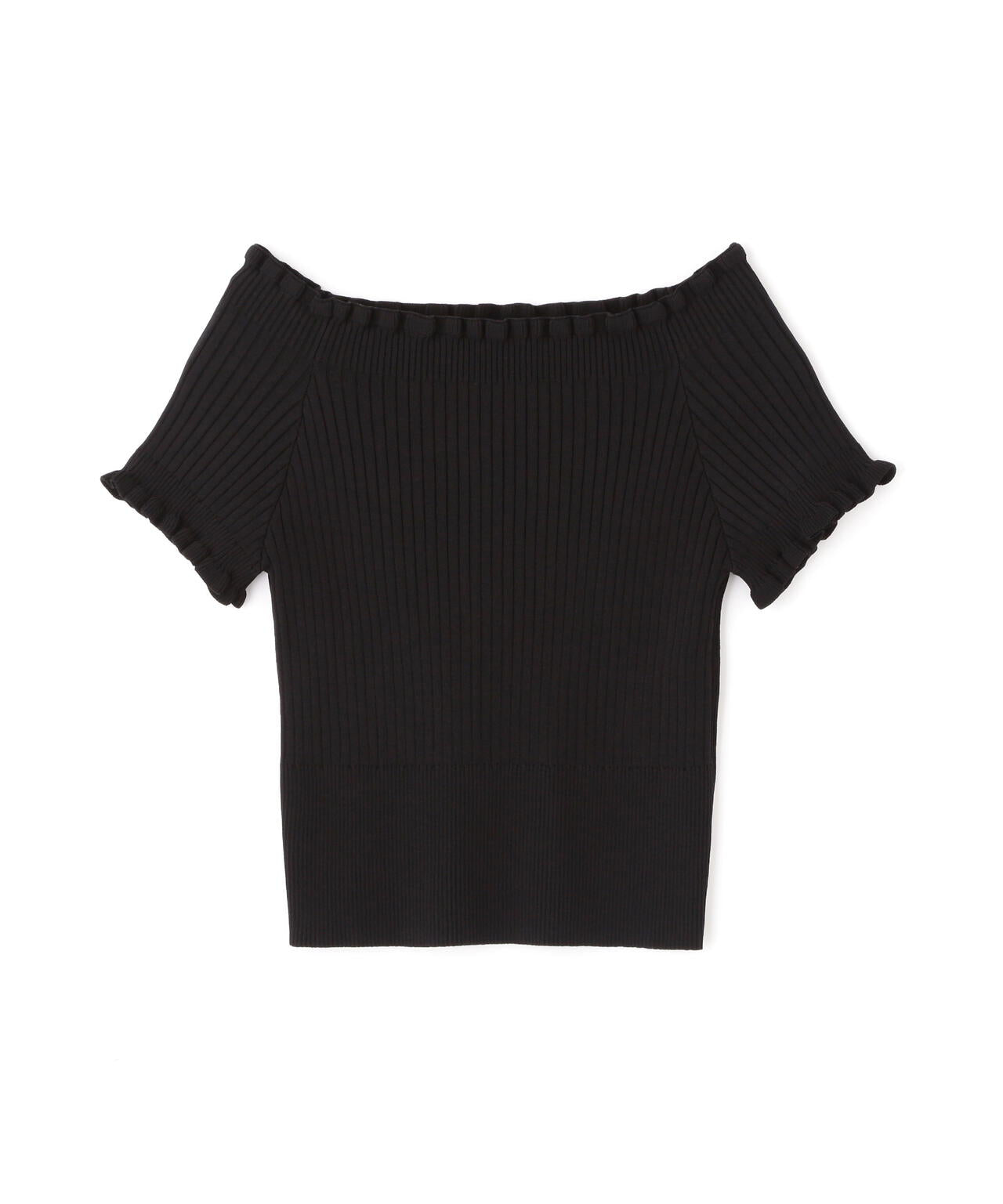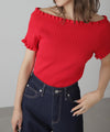 2wayオフショルフリルリブ半袖ニット