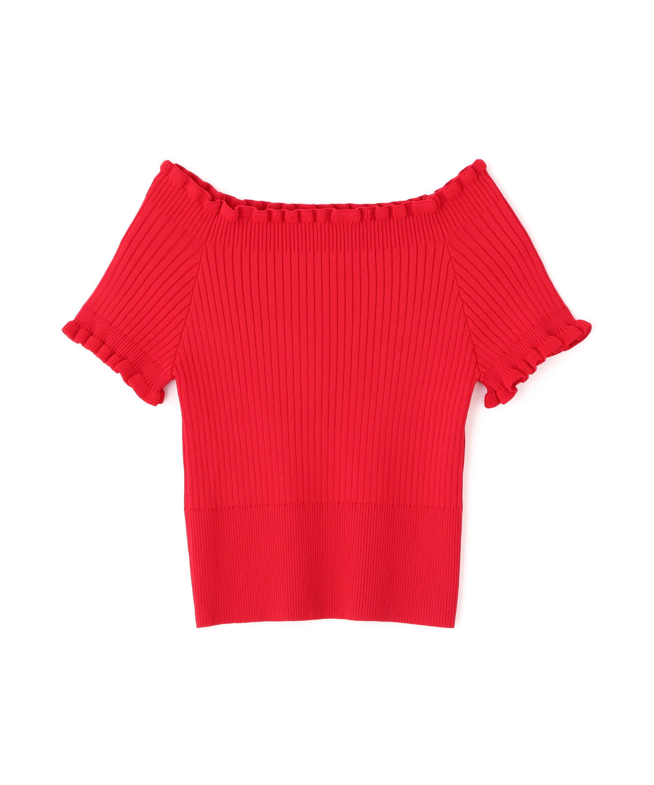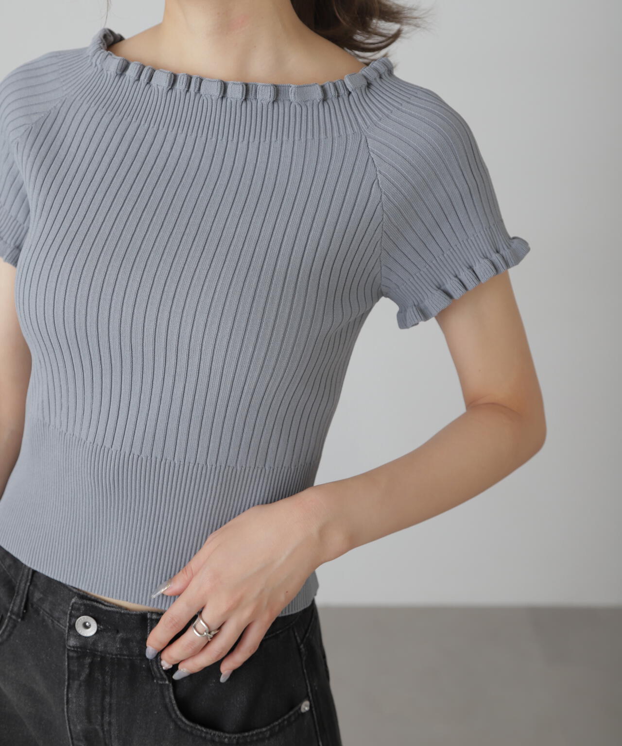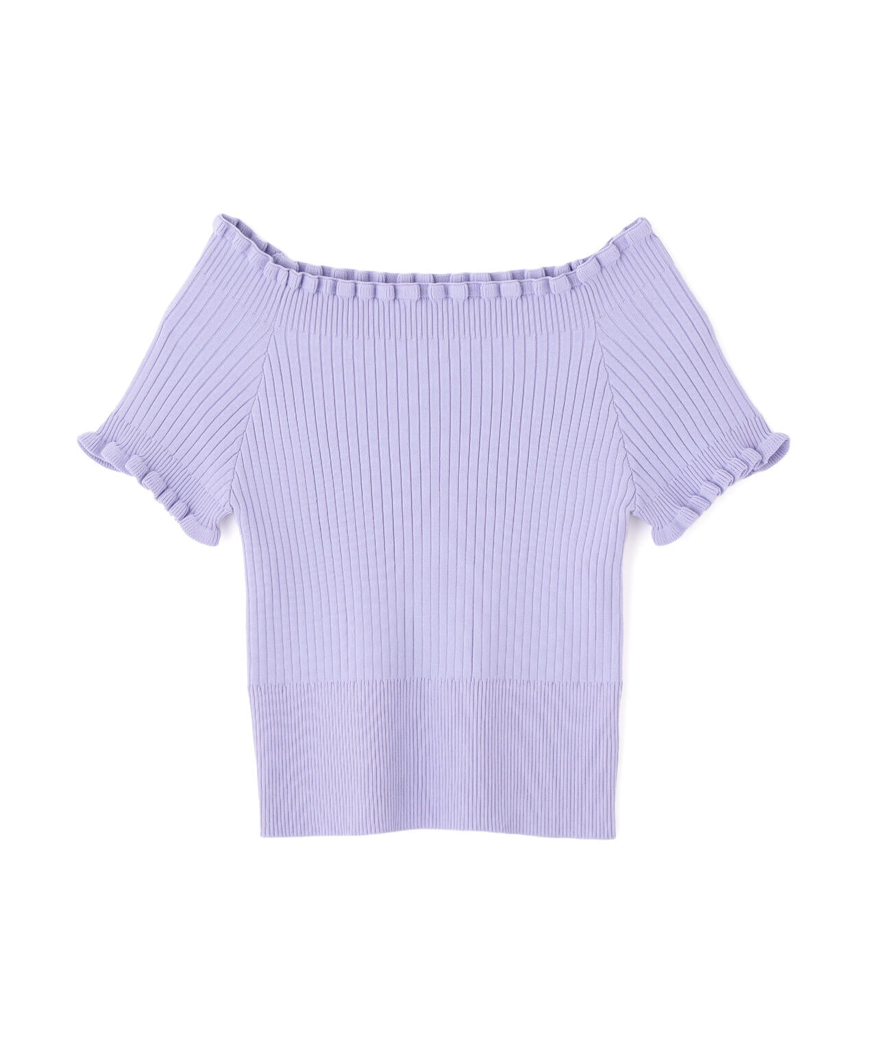 2wayオフショルフリルリブ半袖ニット