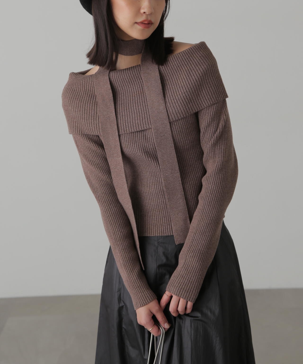 チョーカー付きオフショルニット