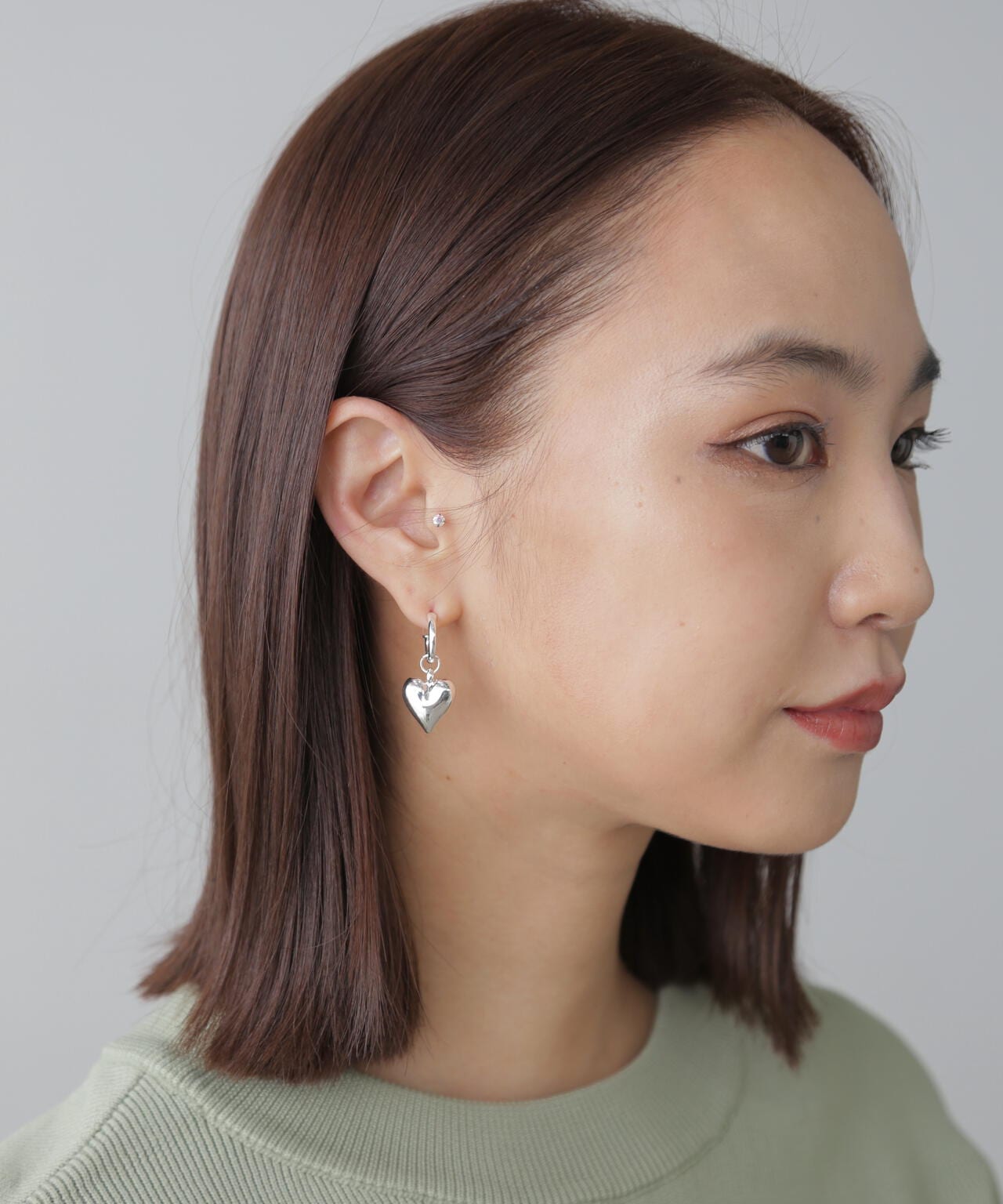 ハートモチーフが程よくカジュアル感をプラスしてくれるピアス。キレイ目スタイルにもマッチしてくれるので、コーディネートを選ばずお使いいただけます。