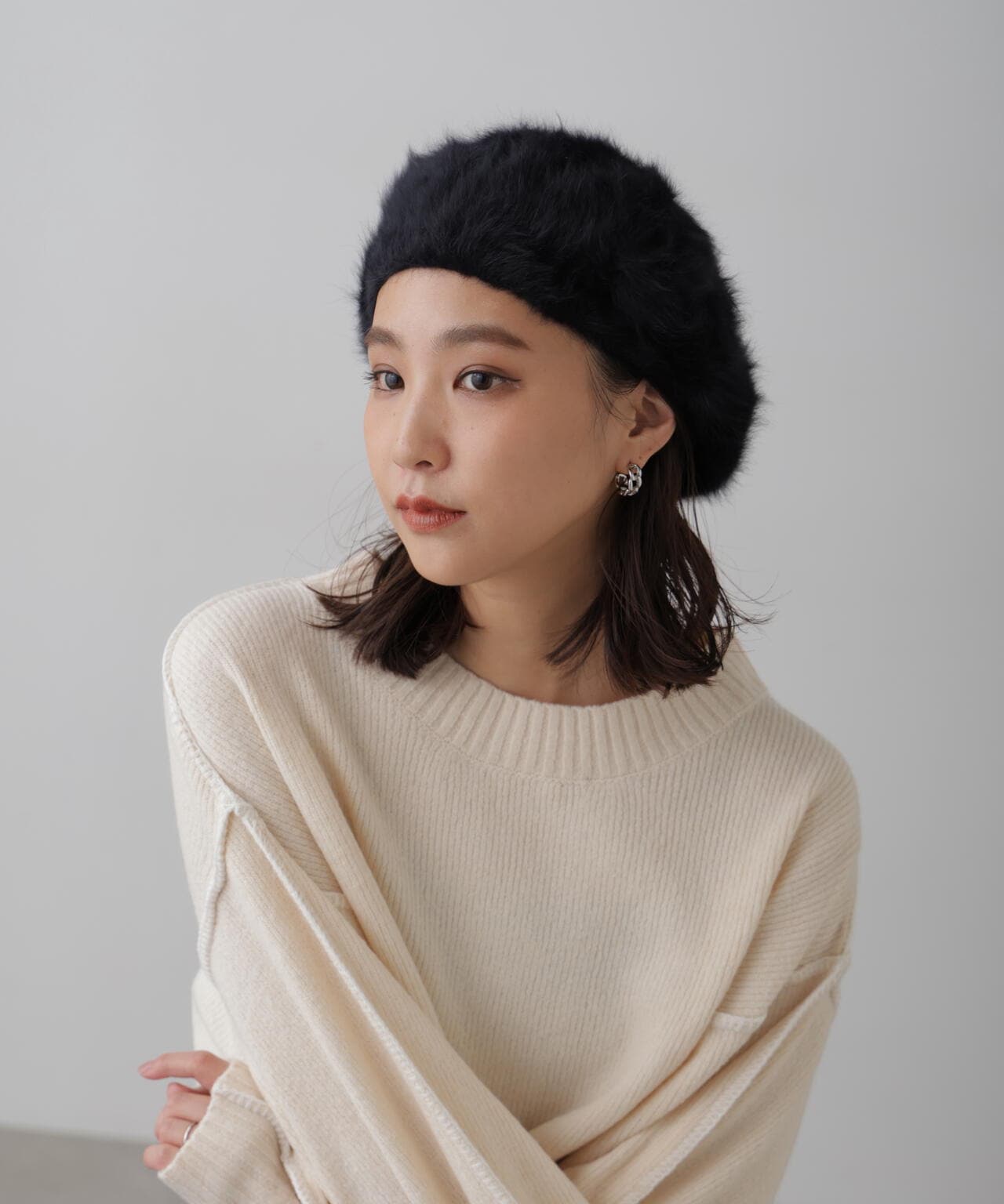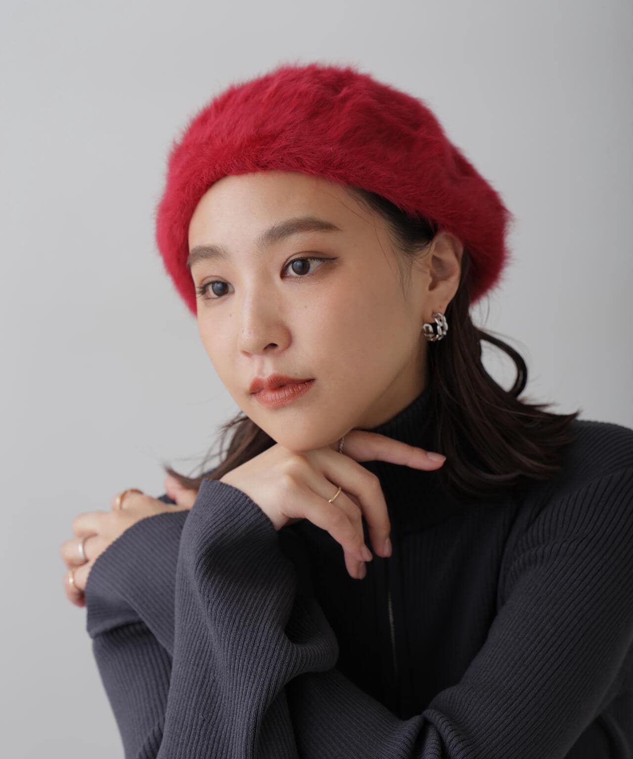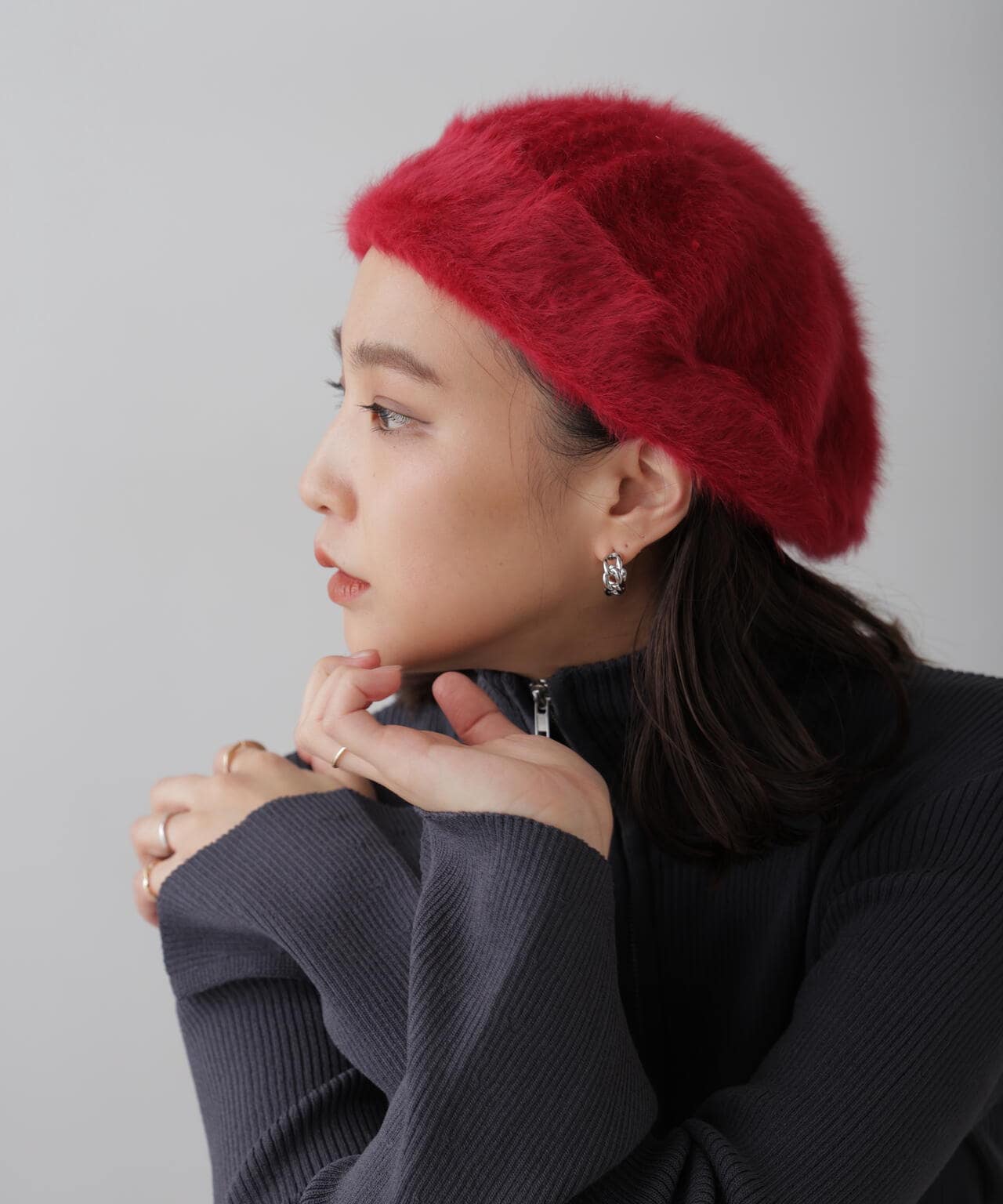 秋冬のコーディネートにぴったりなシャギーベレー帽。深さがありキレイに形が決まる、とても被りやすいデザインです。定番のシルエットなので合わせやすく、テイストを選ばずコーデにプラスワンするだけでトレンド感のある雰囲気に。色違いで持っていたいアイテムです。