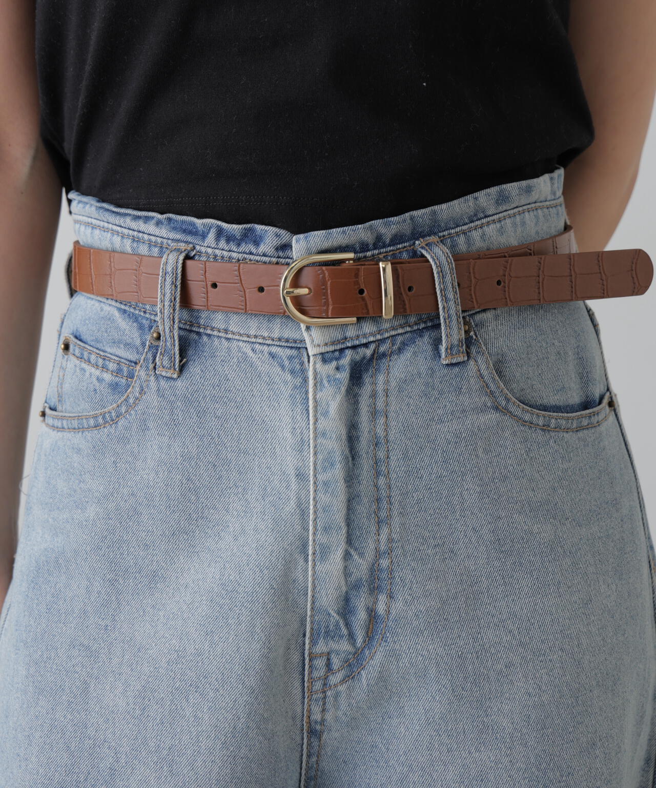 ミドル幅のシンプルなデザインで合わせやすく、コーディネートにさりげないアクセントをプラスしてくれます。ブラウンカラーのみクロコ型押し素材を使用しています。
