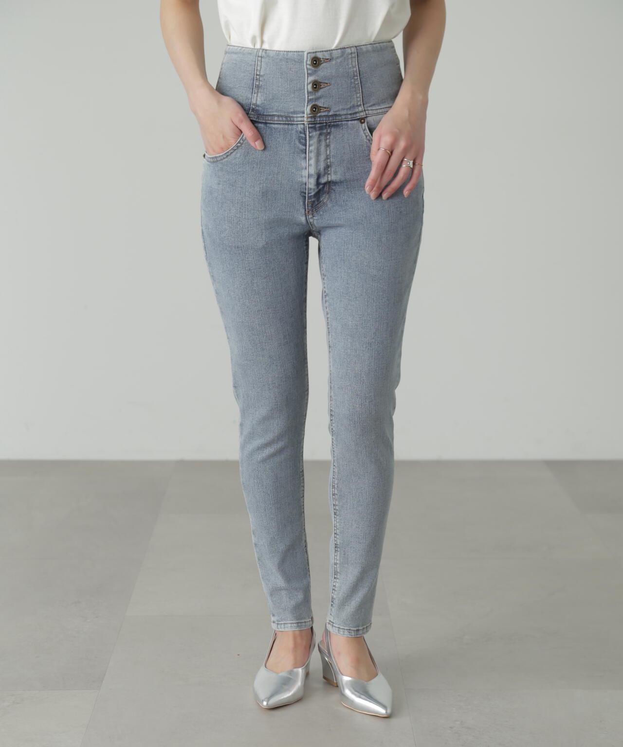 【3サイズ展開XS-M】ハイウエストボタンフライスキニーデニムパンツ【低身長サイズ有】