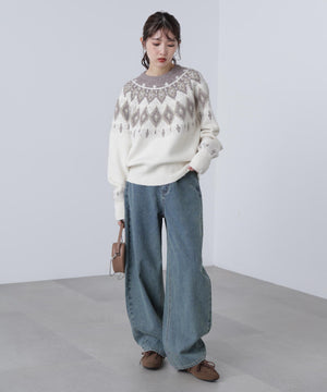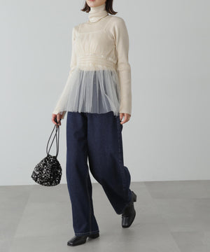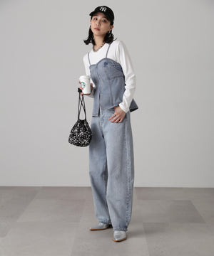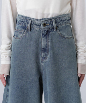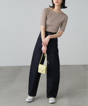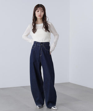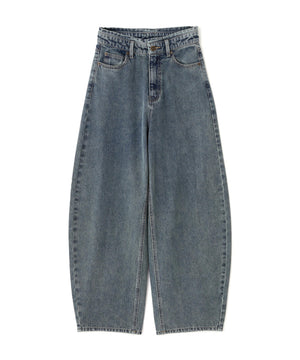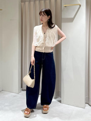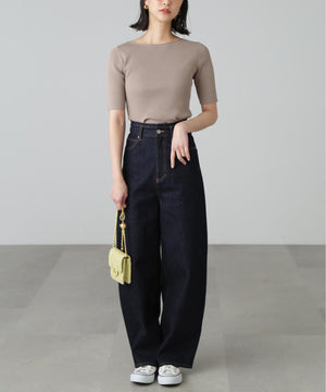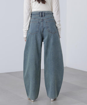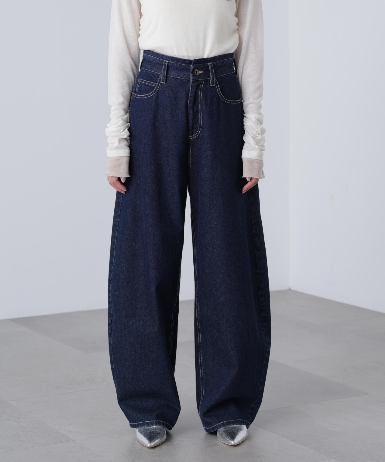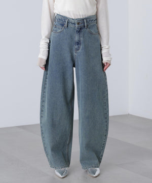 エッグのように丸いフォルムがデザインポイントのデニムパンツ。ボーイッシュになりがちなデザインですが、エッグラインにすることで、レディライクな着こなしが可能に。存在感のあるシルエットなので、トップスはコンパクトにまとめたり、プラスワンで透け感や短丈シャツなどを取り入れるのもオススメです。