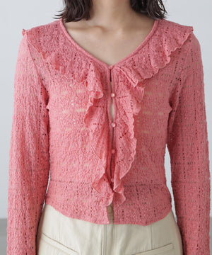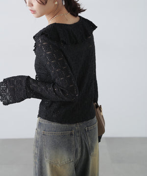 レースラッフルカットソーブラウス