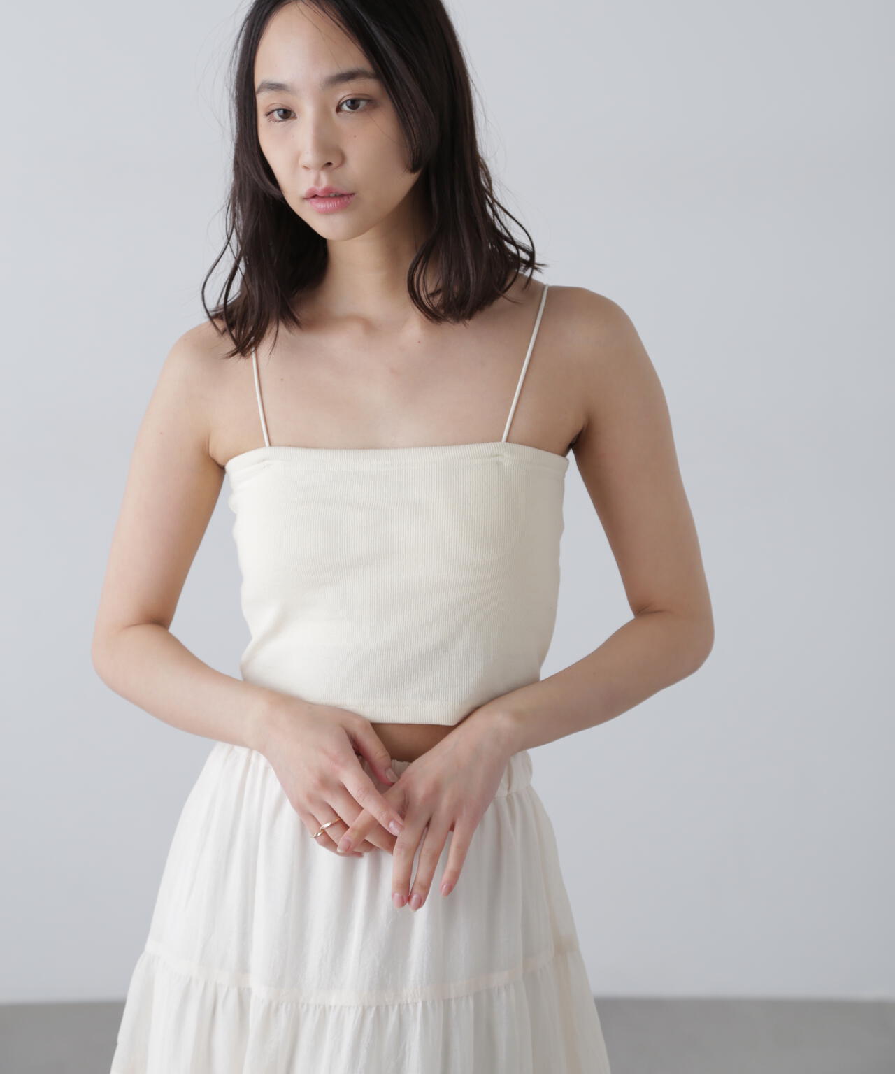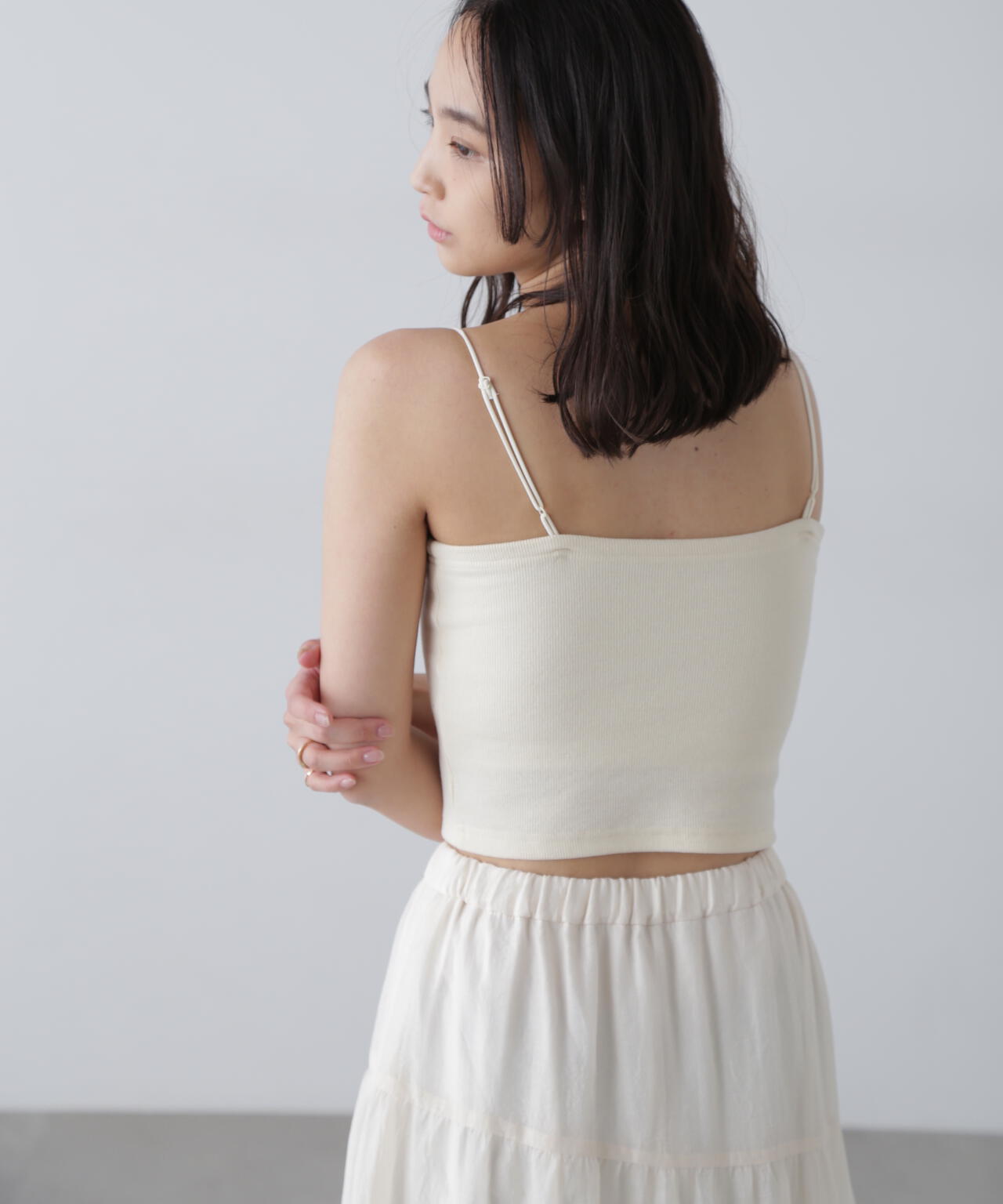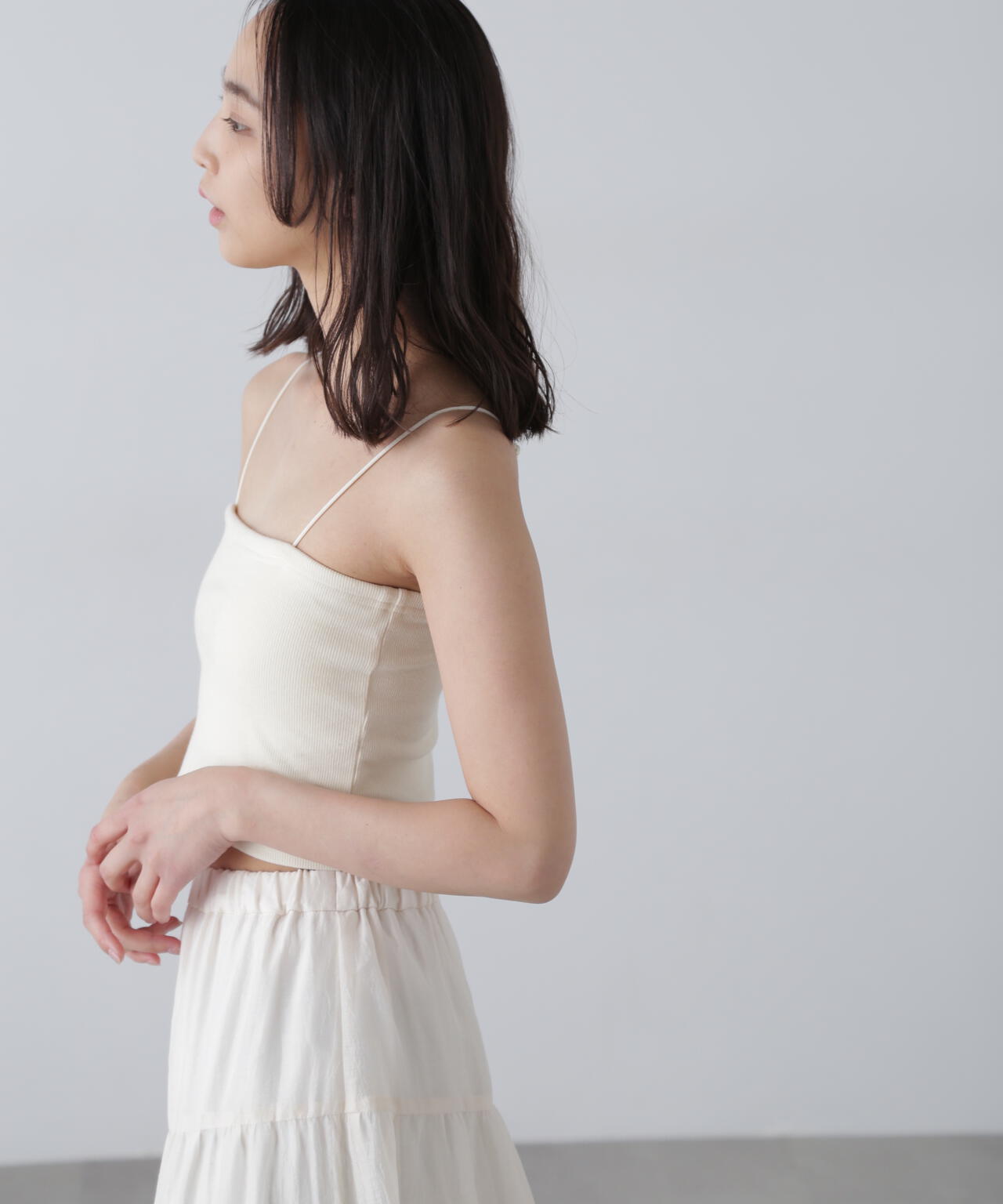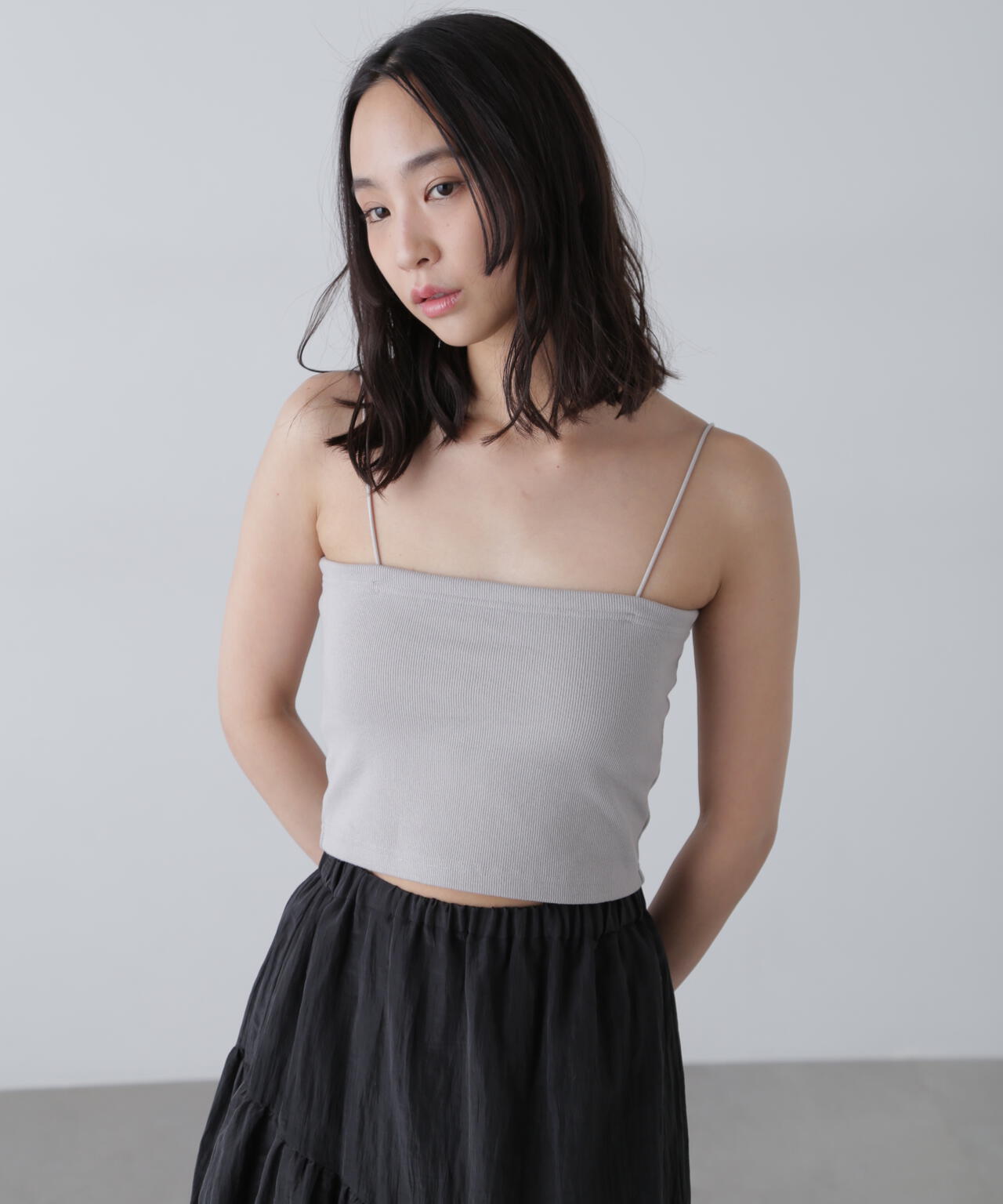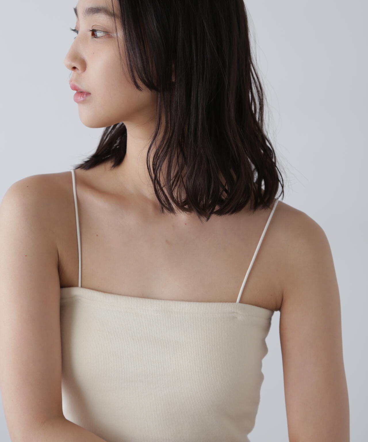 昨年好評のカップ付きショート丈キャミソールが今年も登場!オフホワイト・ブラックは人気カラー、グレーは新色です。綿リブ素材で肌触りが優しく、ストレッチ性もあり気心地抜抜群のカップ付きキャミソール。華奢な肩ストラップで抜け感があり、レイヤードしても邪魔になりません。ベアトップ風のシンプルなデザインで着回し力は抜群。襟ぐりの開いたトップスやワンピースとのレイヤード、シアートップスやカーディガンのインナー使いにもおすすめです。