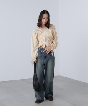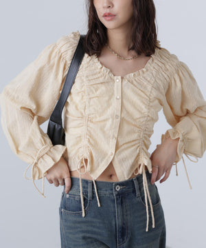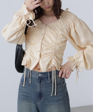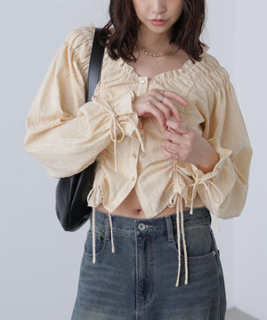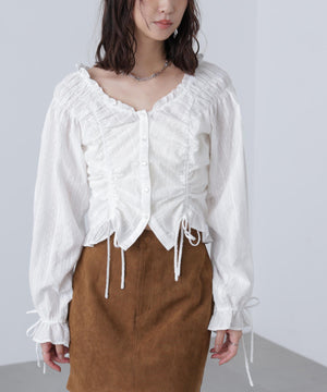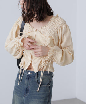 ドロストリボン長袖ブラウス
