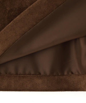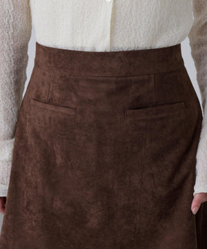 リアル見えするフェイクスウェード素材のタイトミニスカート。少し台形気味のシルエットで脚がきれいに見えます。フロントは片玉縁ポケット付きでレトロムードがありながら、機能性もプラス。裏地が付いているため、タイツと合わせても張り付きにくいです。コンパクトトップスと合わせてガーリーにも、Tシャツや秋はゆるスウェットと合わせて、カジュアルビンテージな着こなしも楽しめます。