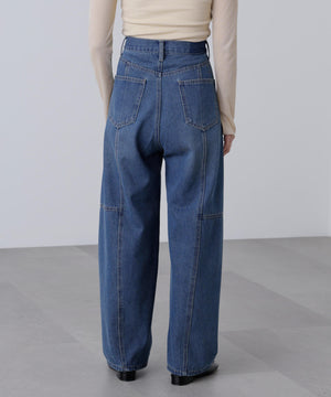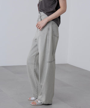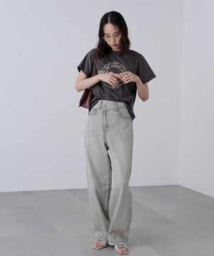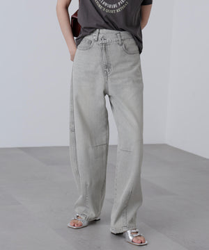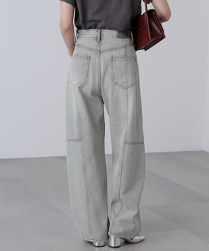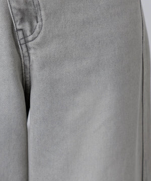 アシンメトリーなウエストベルトがポイントのデニムパンツ。脇線を前寄りに切り替えダーツを入れた、立体感のあるフォルムで、ヒップ下から膝まわりにボリューム感を持たせたコクーンシルエットです。同シリーズのビスチェ(店舗商品番号131-5210071)、デニムジャケット(131-5255041)を揃えたコーディネートもおすすめ。「ライトグレー」ブラックデニムをケミカル加工でブリーチした、淡色の表情が雰囲気あるイチオシカラーと、「ライトインディゴオーバーダイ」程よい中濃色にオーバーダイで仕上げた、ヴィンテージライクな雰囲気のカラーです。