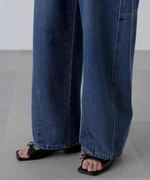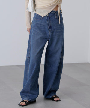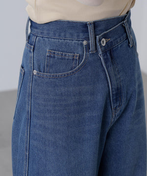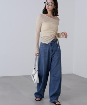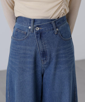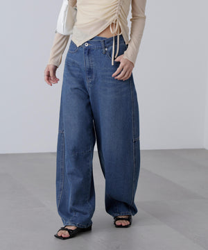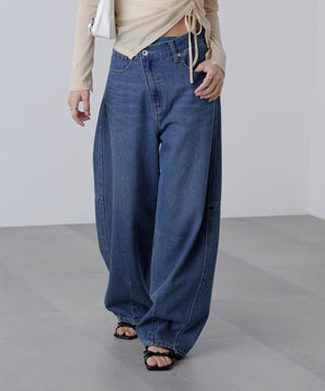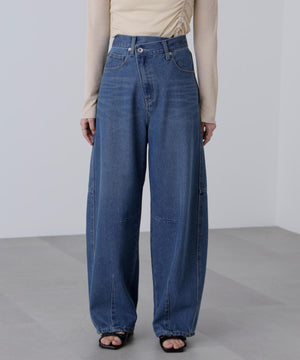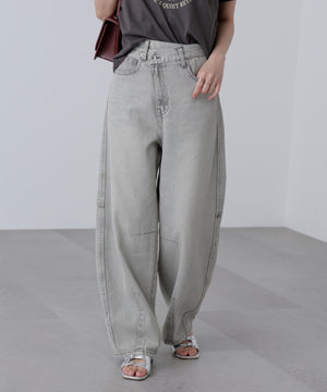 [低身長サイズ/Sシリーズ]アシメベルトコクーンデニムパンツ
