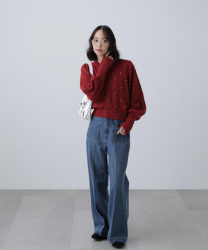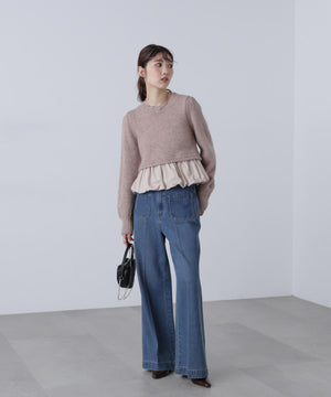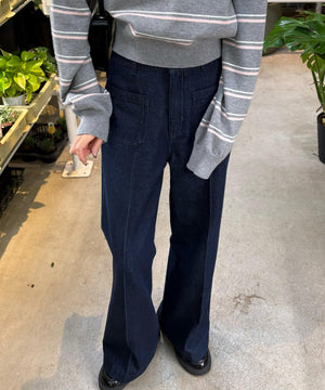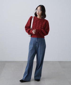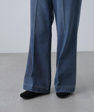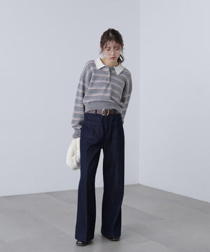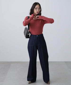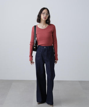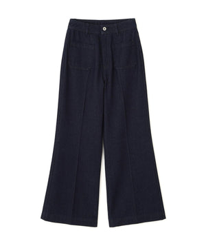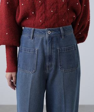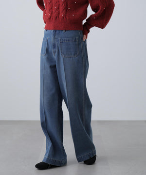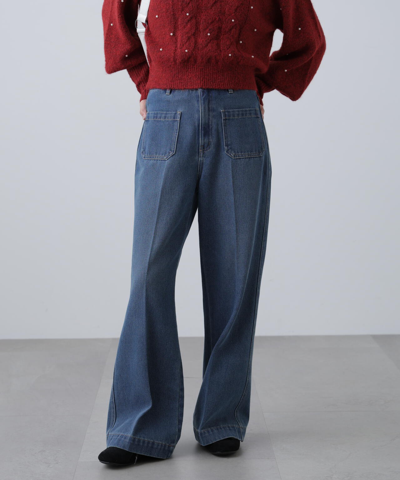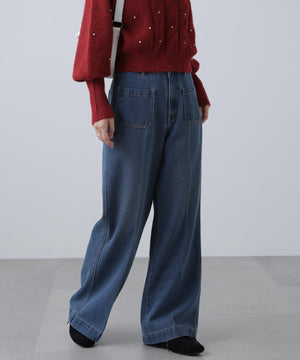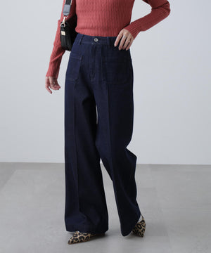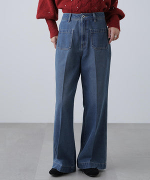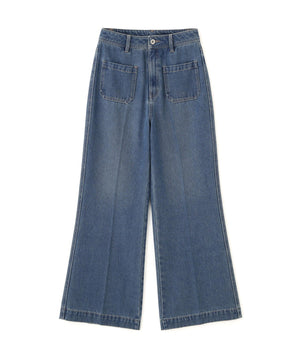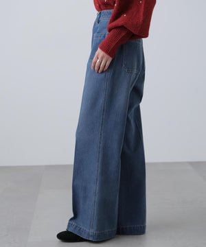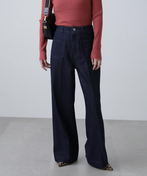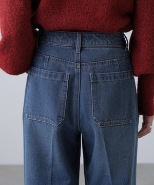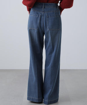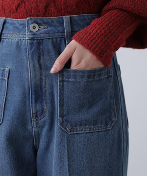 トレンドのノスタルジックな雰囲気ただようバギーデニムパンツ。腰まわりはすっきりと見せ、裾にかけて広がるワイドシルエットです。フロントの小さいポケットがポイント。センタープレス入りで脚長効果を期待できます。コンパクトニット、ざっくりカーディガン合わせもおすすめです。ユーズドライクな加工を施した「ライトインディゴオーバーダイ」と、同系色のネイビーステッチで無地ライクに仕上げた「ワンウォッシュ」の2色展開です。