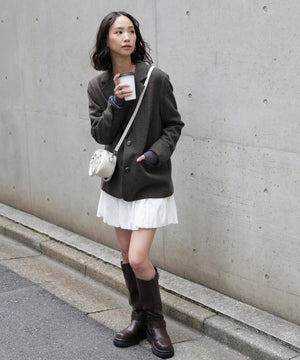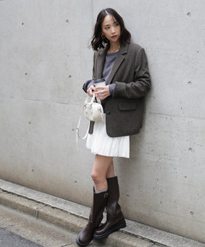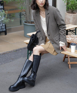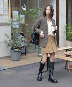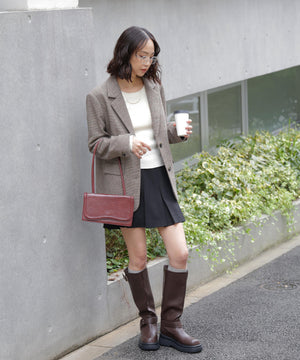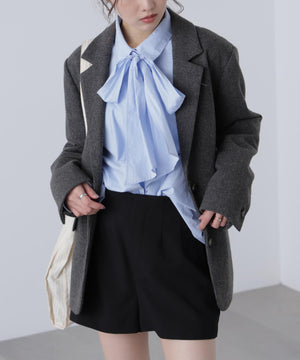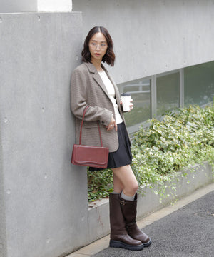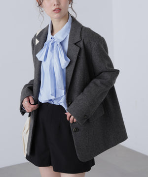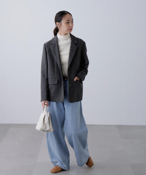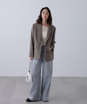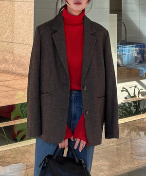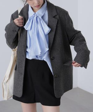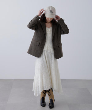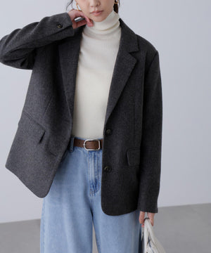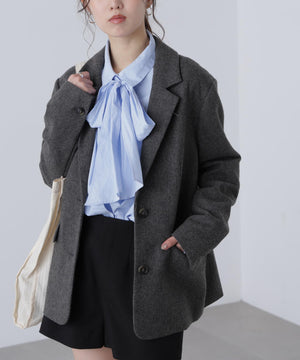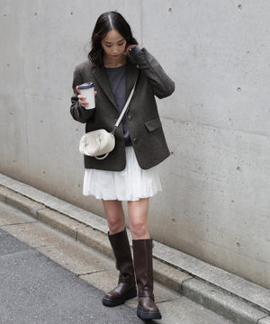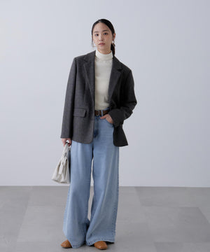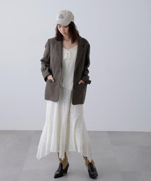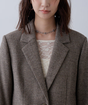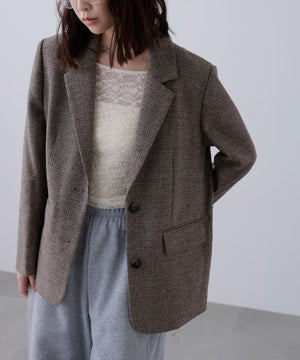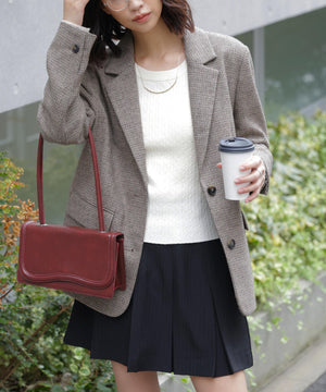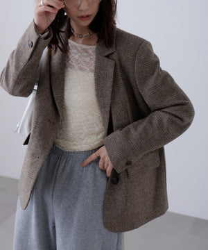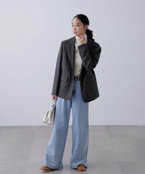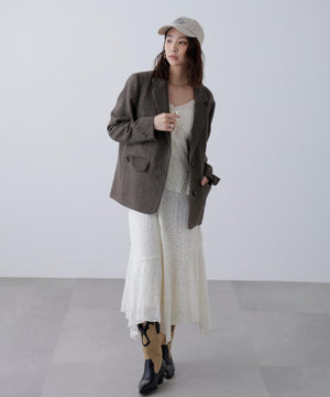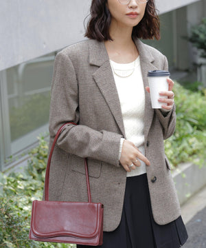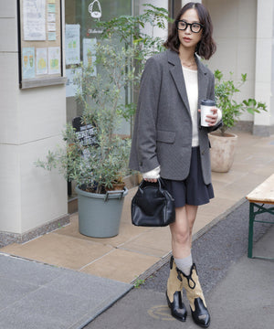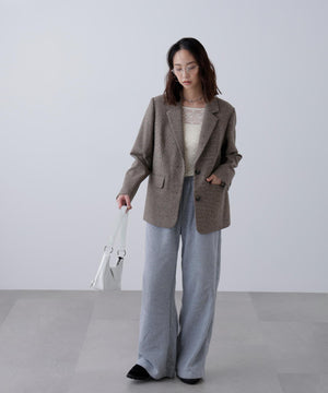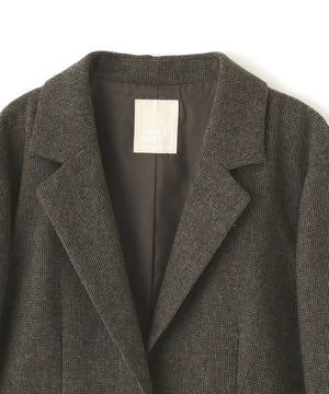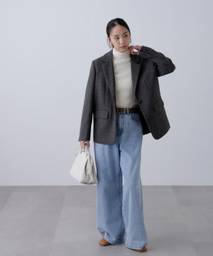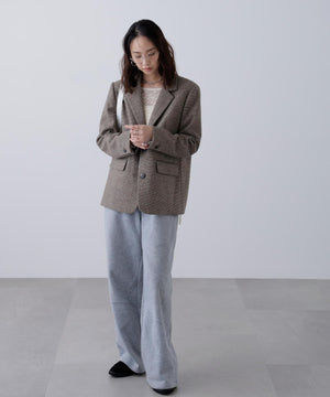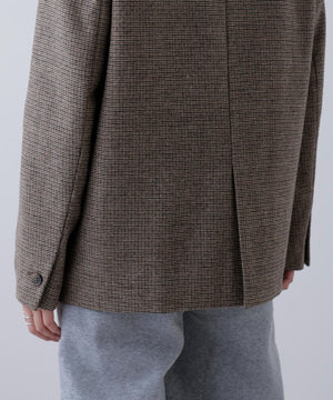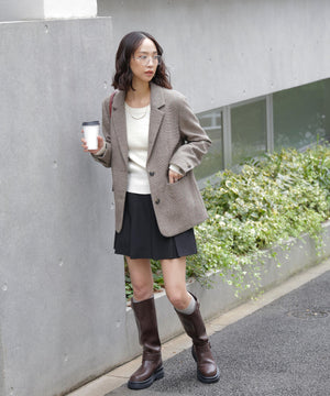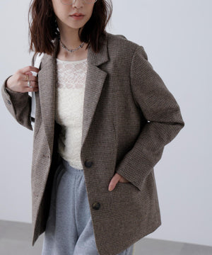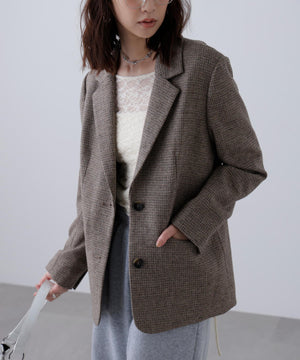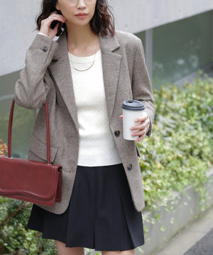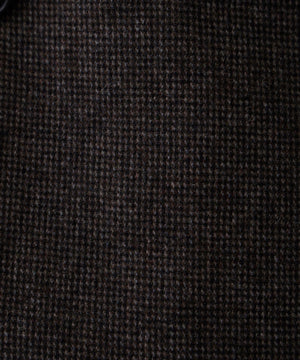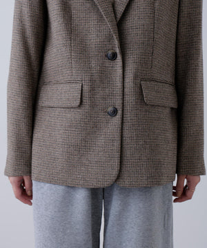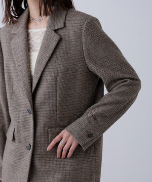 程よいオーバーサイズがこなれた雰囲気で着られるシングルジャケット。袖口は本開きで、一つボタンでアクセントをつけています。オーバーサイズなので中に着込めるのも◎。軽いアウター感覚でもお使いいただけます。ジャケットのインにフリルやボウタイのブラウス、またニットやスウェットなども。ボトムスにフリルスカートを合わせてレディライクに、スウェットパンツやデニムと合わせてカジュアルにもおすすめです。クラシックな印象のウール混先染めシリーズです。小柄で奥行きのある先染めガンクラブチェック3色と、ブラウンベースに多色使いがあたたかみのあるヘリンボーン生地1色を揃えています。