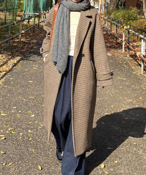 FREE'S MART定番のルーズチェスターコート。ビーバータッチでソフトな風合いが特徴です。程よくゆとりがあるので中に着込みやすく、ロング丈で使いやすさも嬉しいポイント。襟まわりにはステッチを効かせてカジュアルな雰囲気に仕上げました。ベーシックなブラックと杢グレーに加え、ガンクラブチェック柄の3色展開。シンプルなデザインなのでスカートもパンツも合わせやすく、オンオフ問わず活躍します。