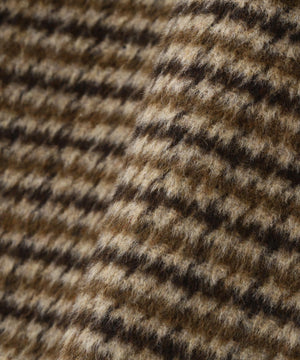 毎年好評!FREE'SMARTオリジナル生地で仕立てたオーバーサイズのPコート。襟ラペルを大きめにし、トラッドなアイテムの中にリラックス感を加えたデザイン。襟ぐりは釦を留めてスタンドネックに、開けてPコートとしても着られる2way仕様です。ミドル丈でややテントラインに広がるオーバーサイズのシルエット。太めにとったステッチワークと大きめの釦がポイント。ミニスカートやショートパンツと着丈を揃えるように着用し、ロングブーツを履くと、スタイルアップしたスタイルに見せてくれます。デニム合わせでカジュアルスタイルもおススメです。「ブラック無地」ジャージ素材をフェルト化して織り上げ、肉感と打ち込みの強さが特徴。「ガンクラブチェック」さらにビーバー仕上げを入れ、ぬくもりのある目面でニュアンス感があります。「大きめのグレンチェック」今季注目のブラウンミックスカラーで、ざっくりと太番手の糸で織りあげた表情ある糸です。どの色も毛羽立ちが少なく、保温性にも優れています。