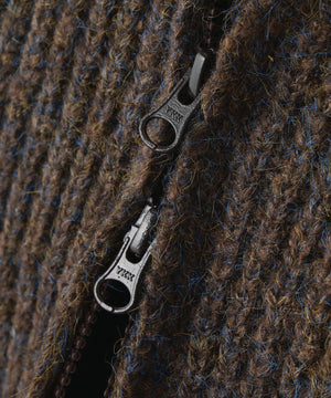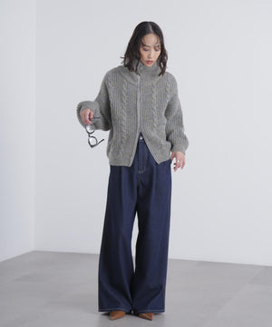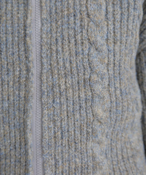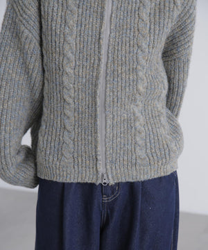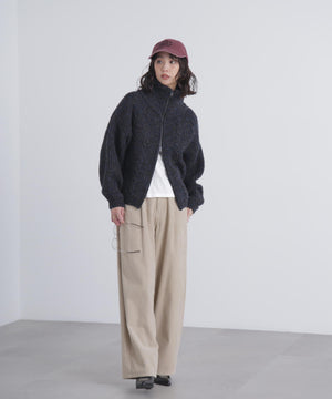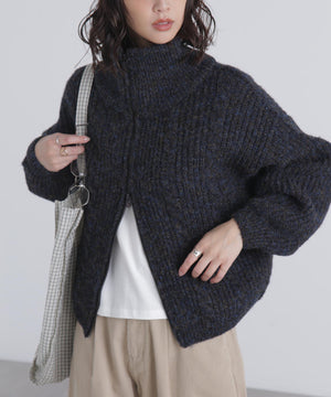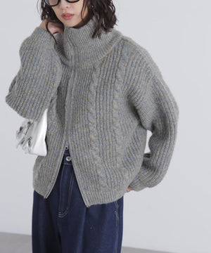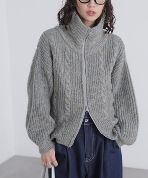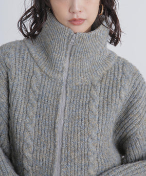 昨シーズンご好評いただいたフロントZIP付きニットブルゾンが今シーズンも登場!メランジ感が可愛いしっかりとした片畔編みで、フロントのさり気ないケーブル編みもポイント。ライトアウター感覚で長く使えます。高めなスタンドカラーで顔まわりが暖かいのも嬉しいポイント。ビスロンジップを使用しているのでハードな印象にならず、ゆとりのあるサイズ感がカジュアル使いにぴったり。逆開ファスナー仕様なので、上下を少し開けて抜け感を出した着こなしも楽しめます。スエードミニスカートやショートパンツ×ロングブーツとのスタイリングがお勧めです。