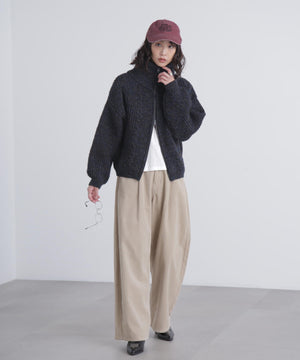 スタンドネックショート丈ジップニットブルゾン