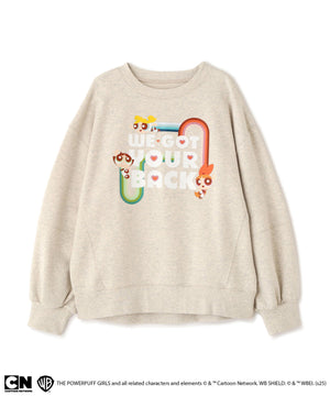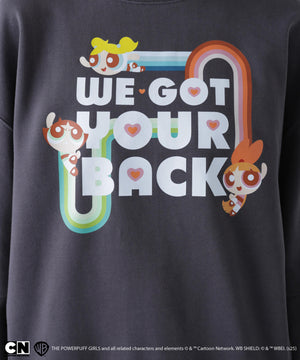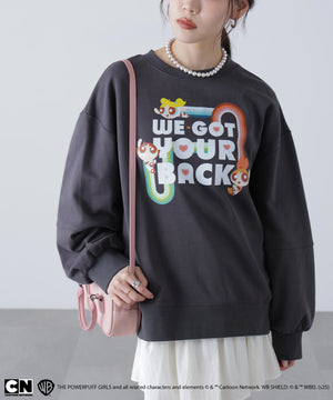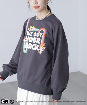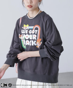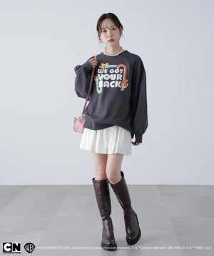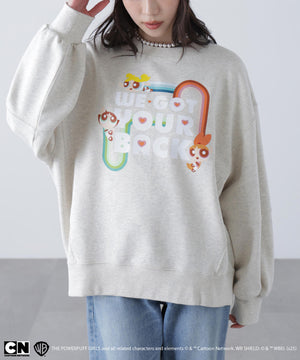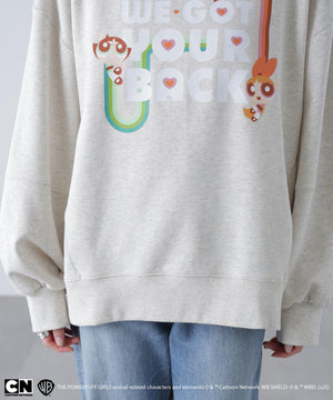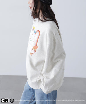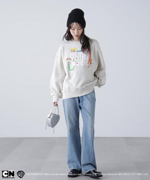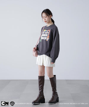 アメリカの人気アニメ「THE POWER PUFF GIRLS」とのコラボレーション。パワーパフ ガールズならではのカラフルさを活かしつつ、白ロゴを大きくしたグラフィックで着やすくなっています。ビビッドカラーながらも、強すぎない色味なのでまとまりある印象に。前後差をつけた裾は後ろを長くして、抜け感とラフ感を演出。袖と身頃には切り替えが入り、デザイン性のあるスウェットに。大きめサイズなのでミニボトムやフレアパンツ、ストレートデニムなど、細身のボトム合わせがおすすめです。