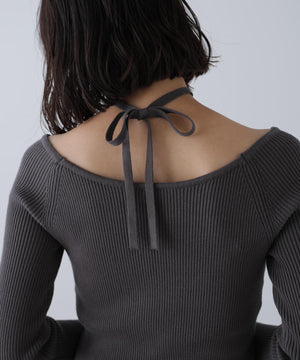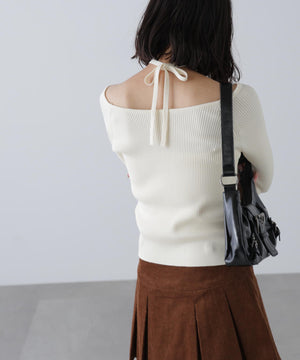肩を落とすとオフショルダーにもなる2WAYデザインのニット。オフショルスタイルでも肩紐が出るので、リボンを結んでとめることが出来ます。逆開フロントジップは、下側を少し開けてボトムスを見せるレイヤードを楽しみつつ、ウエスト位置が高くなりスタイルアップも期待。ウエストのみリブピッチを細く変えているため、ウエストシェイプも叶えます。デニムやカジュアルパンツと合わせたり、フェミニンなティアードスカートに合わせて、控えめなヘルシースタイルもおススメです。