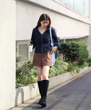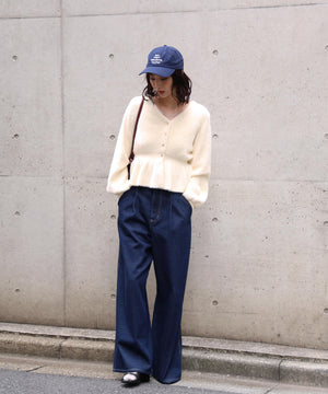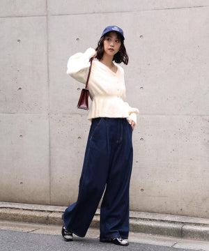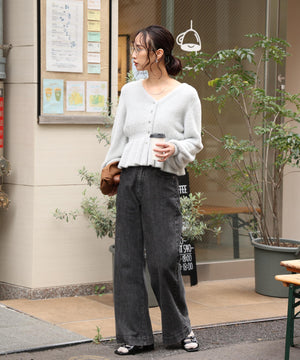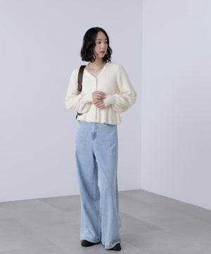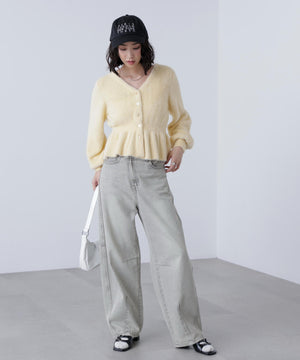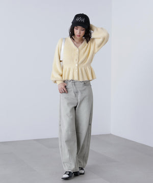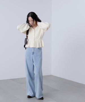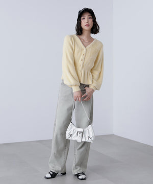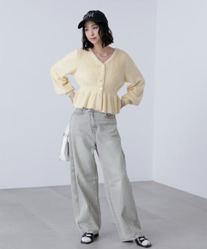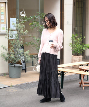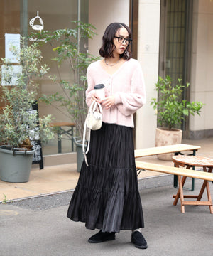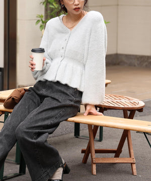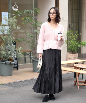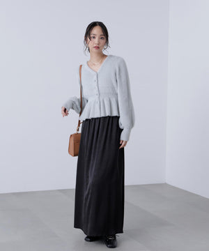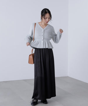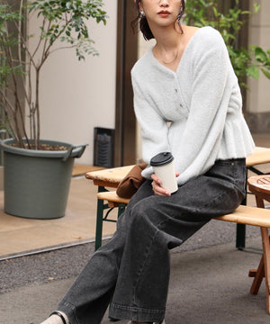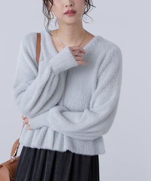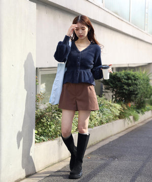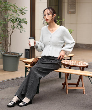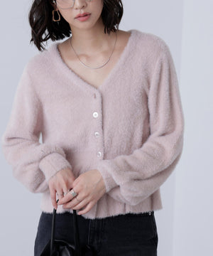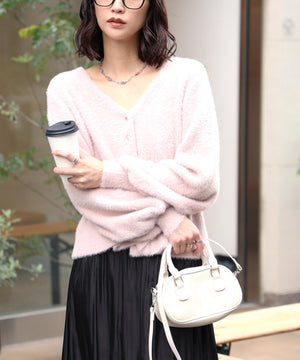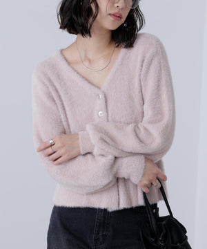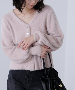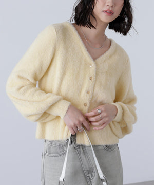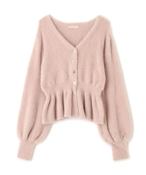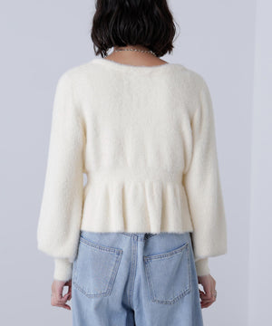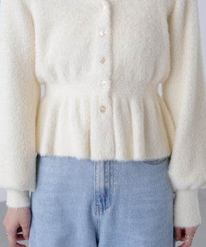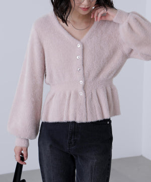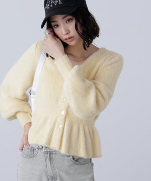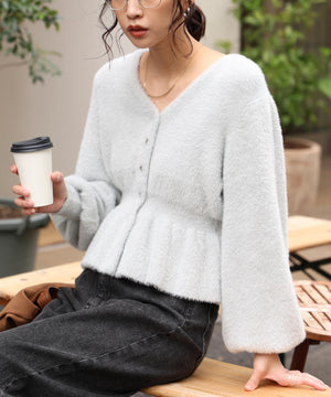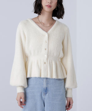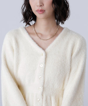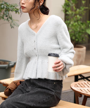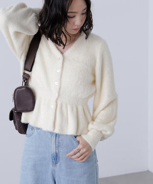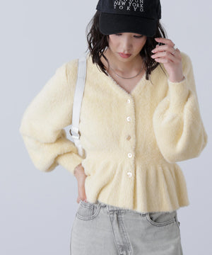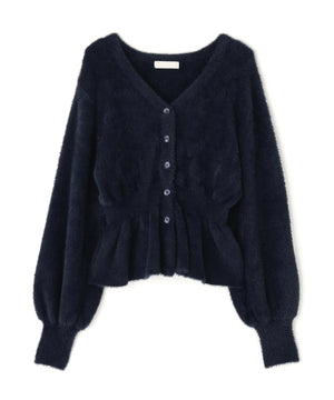 毎年ご好評のカーディガンが今年も登場!トップスとしても羽織りとしても使える、軽やかな着心地のシャギーニットカーディガン。毛足が短く肌に触れてもチクチクしにくい素材を使用、柔らかく滑らかなタッチの糸で仕上げました。シャギーの毛は抜けにくく、しっかりと目が詰まっています。ウエストをリブ編みにしてシェイプさせ、裾はペプラムにすることでスタイルアップを叶えるシルエット。袖口にはギャザーを寄せてボリュームスリーブになっています。1枚でニットプルオーバーのようにも、インナーにブラウスやハイネックトップスを合わせたり、前開きにしてワンピースなどの羽織りにも着回せます。