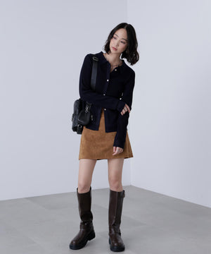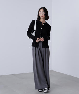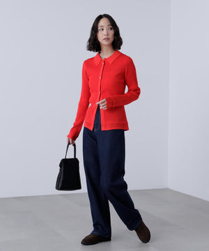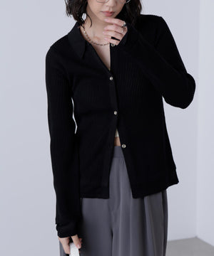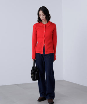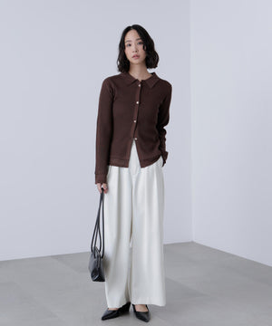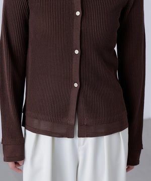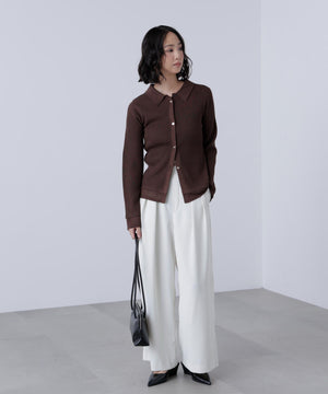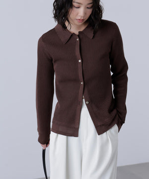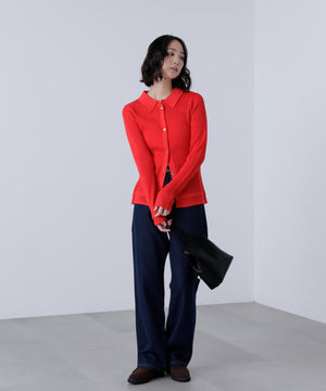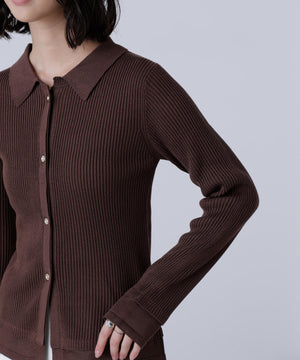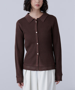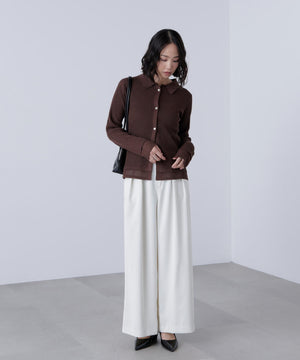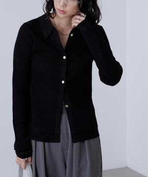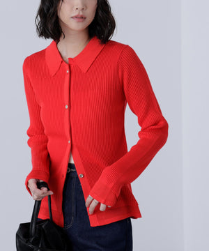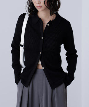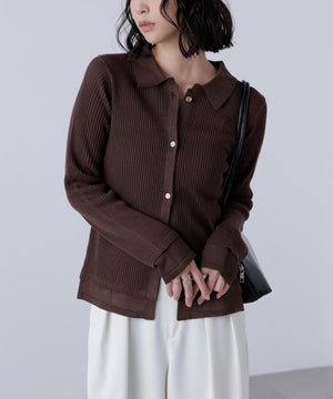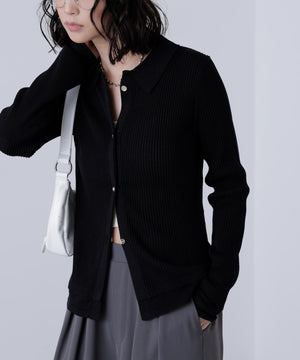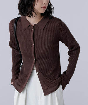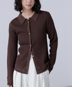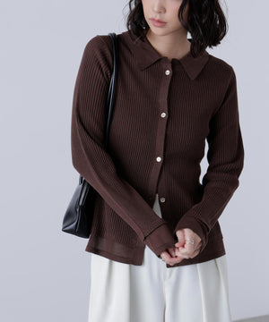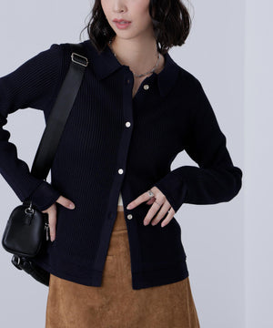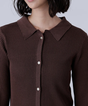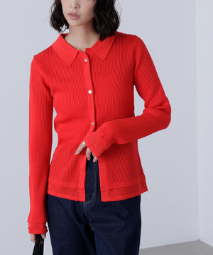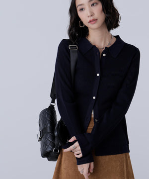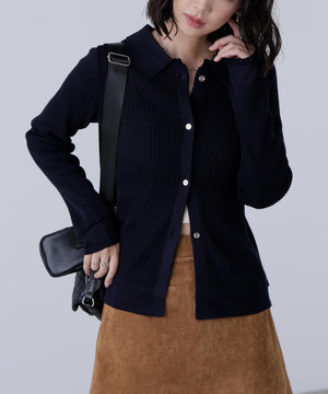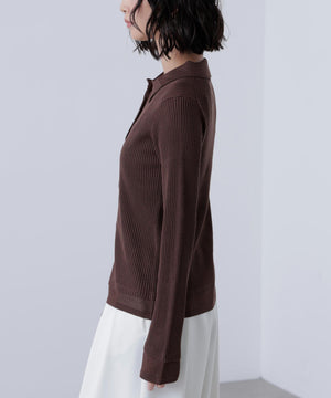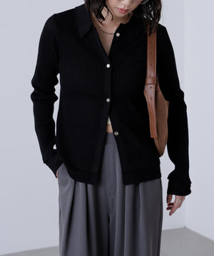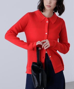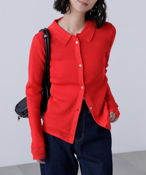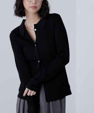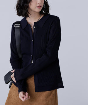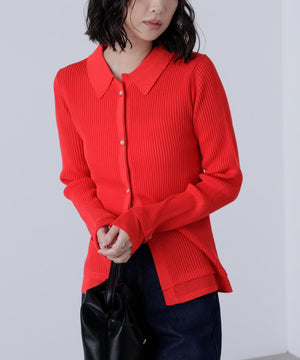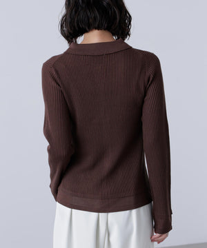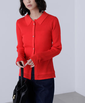 【涼しく秋トレンド】秋にも程よい素材感で、暑い日も涼しい日もちょうどよくロングシーズン着用できるリブニット。トレンドの襟付きと袖口を2枚仕立てにしたレイヤード風デザインです。メタリックボタンがポイントで、トレンド感を演出。ボタンを外して着ると程よい抜け感を出せます。デニム・ベロアパンツ・スウェットパンツ合わせでヘルシーなカジュアルコーデがおすすめ。ティアードスカートやナロースカートとも着回せます。