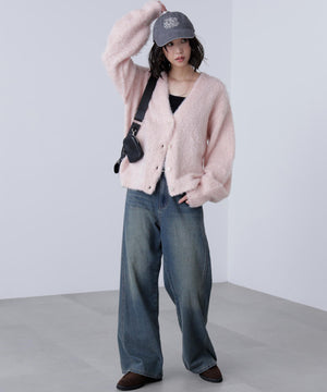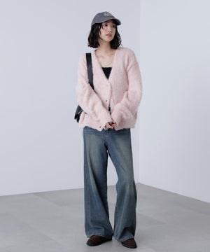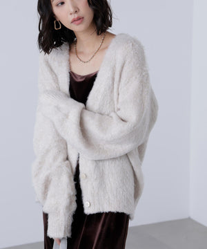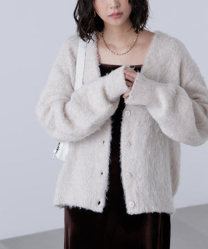 ウェーブ起毛Vネックカーディガン