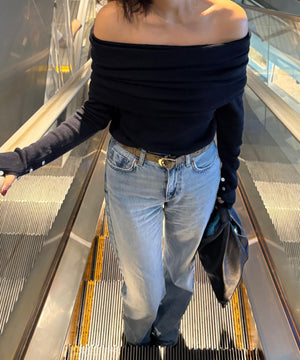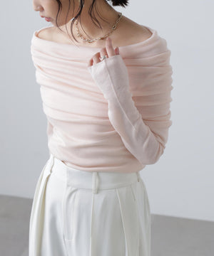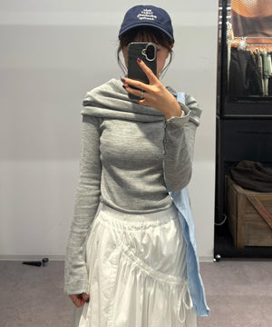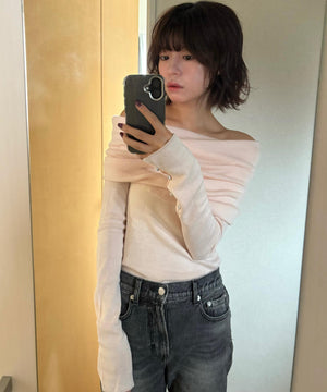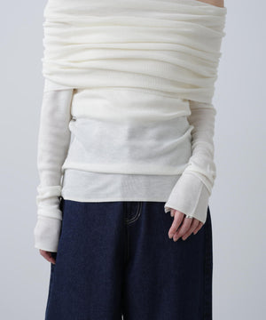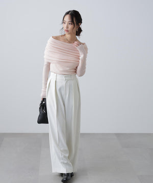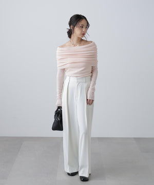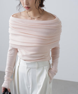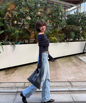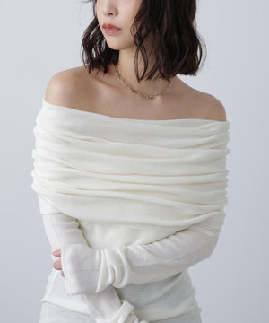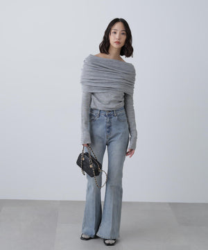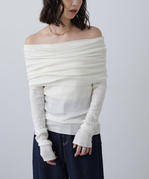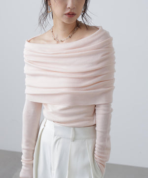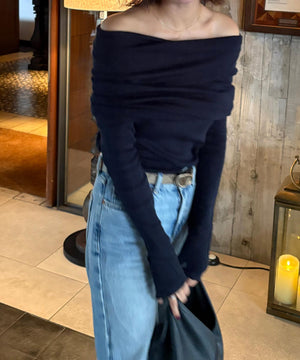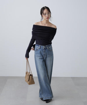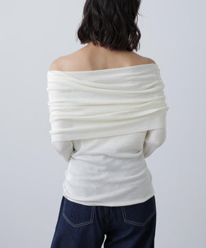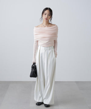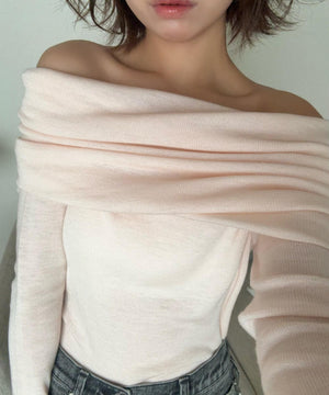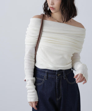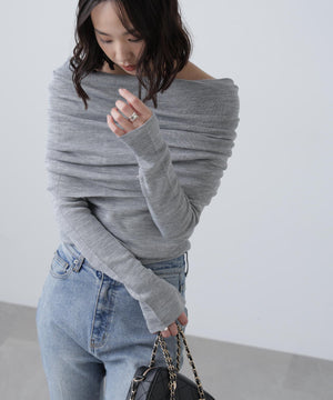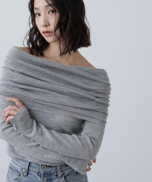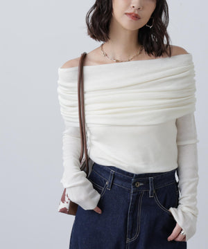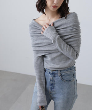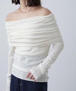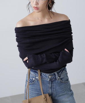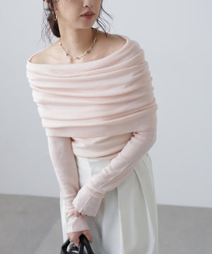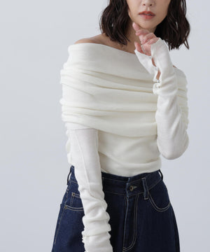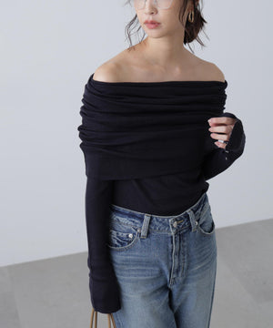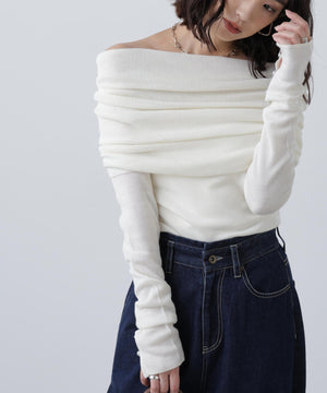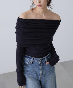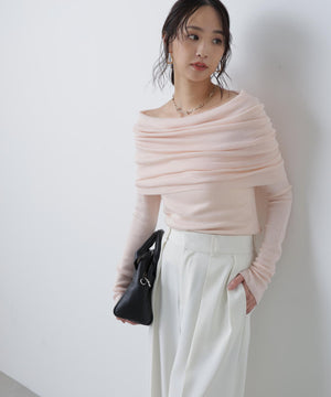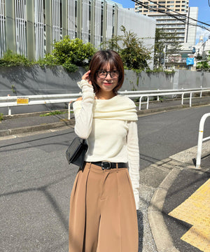 【人気インフルエンサースタッフ@rio_mfm_コラボ企画】■RIO企画全骨格着映えニットが登場!全4色が人気スタッフ@rio_mfm_とのコラボカラーです。ストレッチ性の高いニット素材を使用したオフショルニットです。オフショルの折り返し部分は程よくフィットさせながら、デコルテの見え方を自由に調整できるマルチウェイなデザイン。デコルテの開き具合を調整できるので、全骨格、全身長自分のジャストな見え方で着ていただけます。袖口ボタンを1つか2つ開けて、手元に抜け感をだして着こなすのもおすすめ。フレアやワイドデニム・ハイウエストスラックスと相性バツグンです。