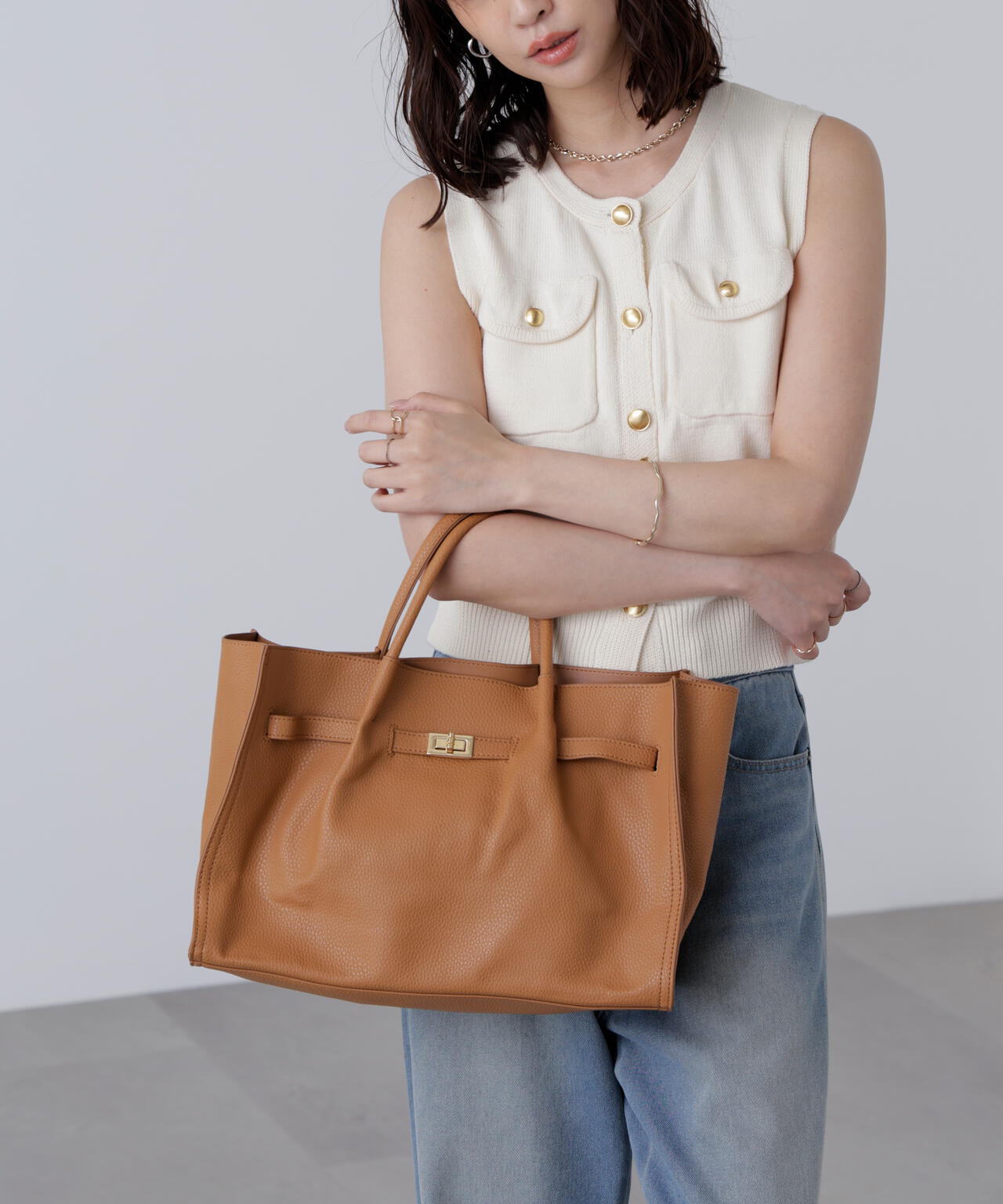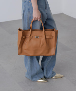 素材感を際立たせるシンプルなデザインのトートバッグ。中央ベルトデザインがアクセントになります。A4サイズも入る大きさなので通勤通学、タウンユースからレジャーまで幅広いシーンで活躍できます。
