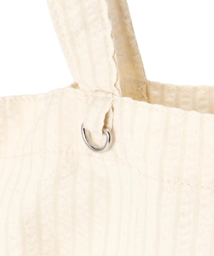 どんなスタイリングにも気軽に合わせられるプレーンでシンプルなデザインのロゴトートバッグ。表側のハンドルにDカンが付いているため、好みのキーチェーンが付けらる仕様です。ロゴとA4ファイルが入る大きなサイズ感が、シンプルになりがちなコーディネートのポイントになります。
