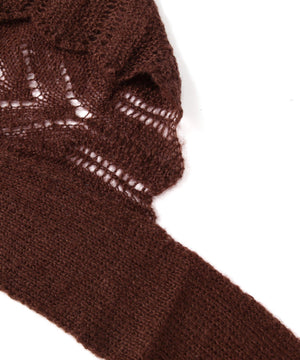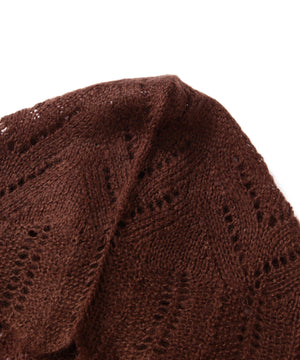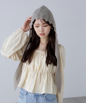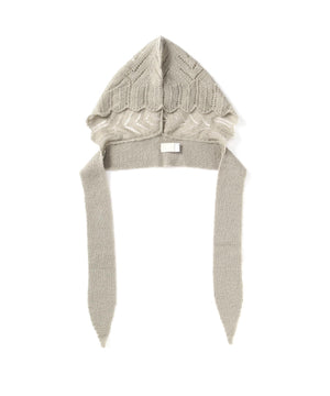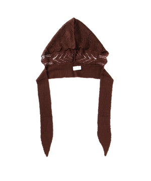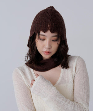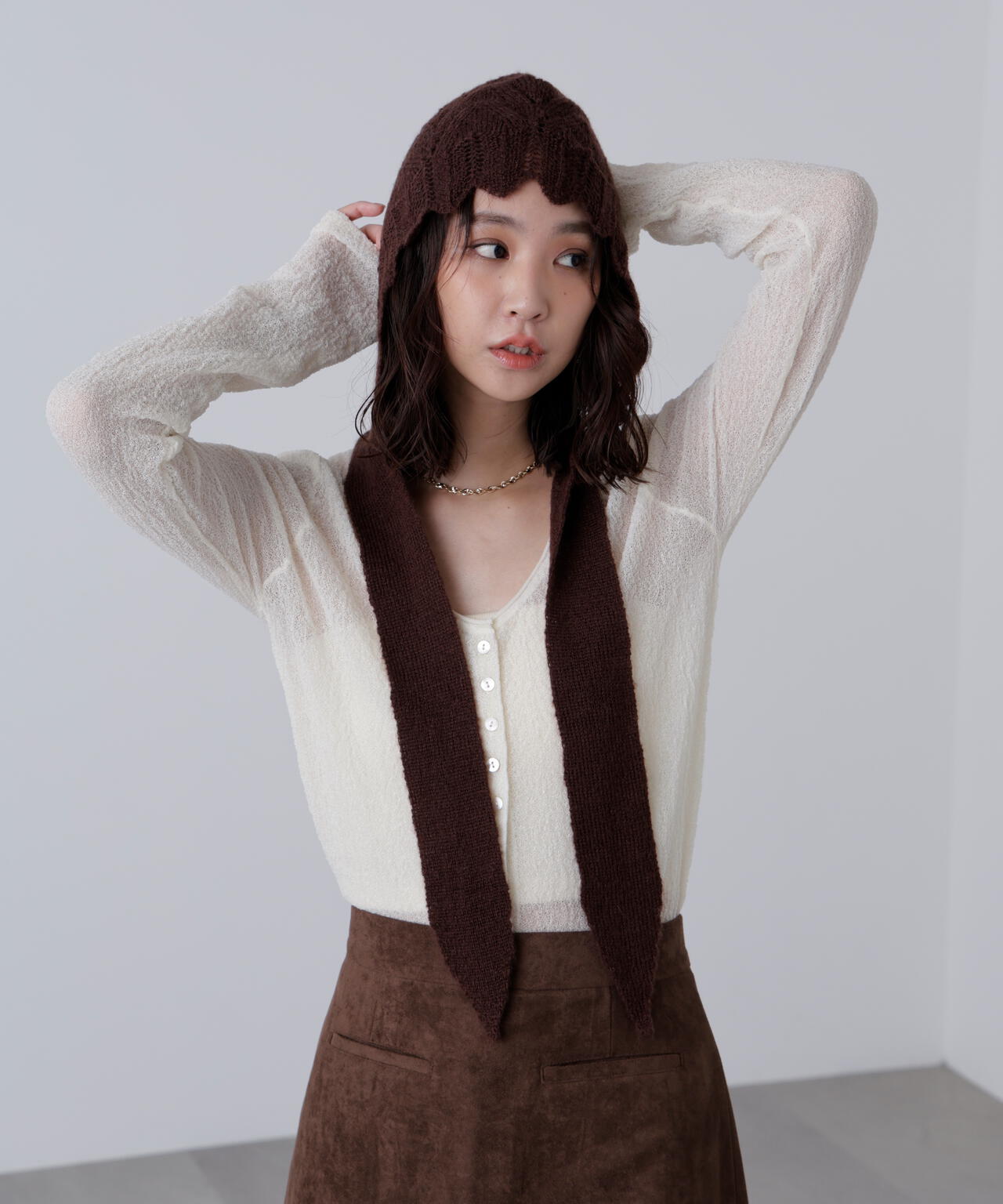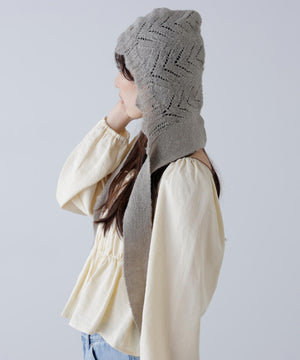 シーンやスタイリングに合わせて様々な着用パターンを楽しめるフード付きマフラー。今季は透かし編みでレーシーな雰囲気をプラス。アウターからフード部分を出して、パーカー風にコーデを組むのもおすすめです。