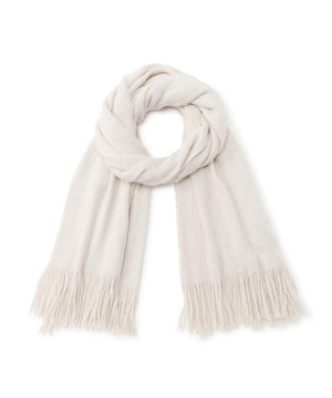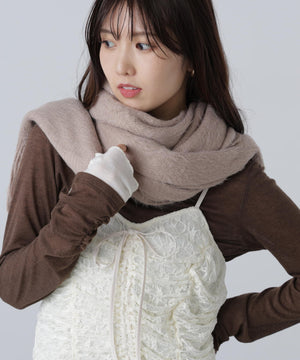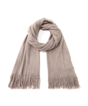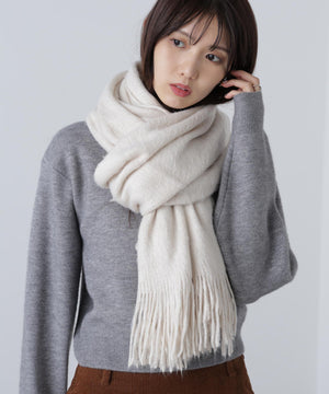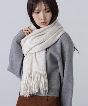 ふんわりとした起毛感が魅力のラッセルストール。柔らかい肌当たりとあたたかな付け心地で寒い季節に活躍してくれます。無地のストールはどんなスタイリングにも取り入れやすくてお勧めです。