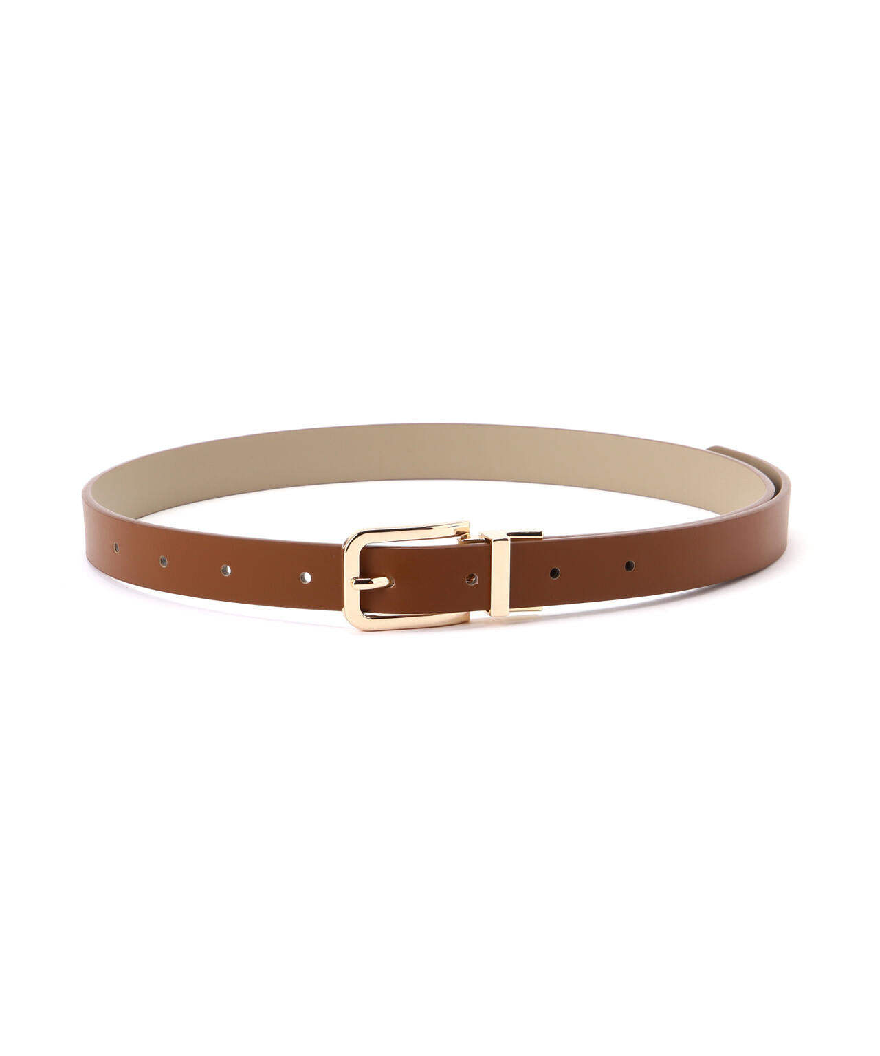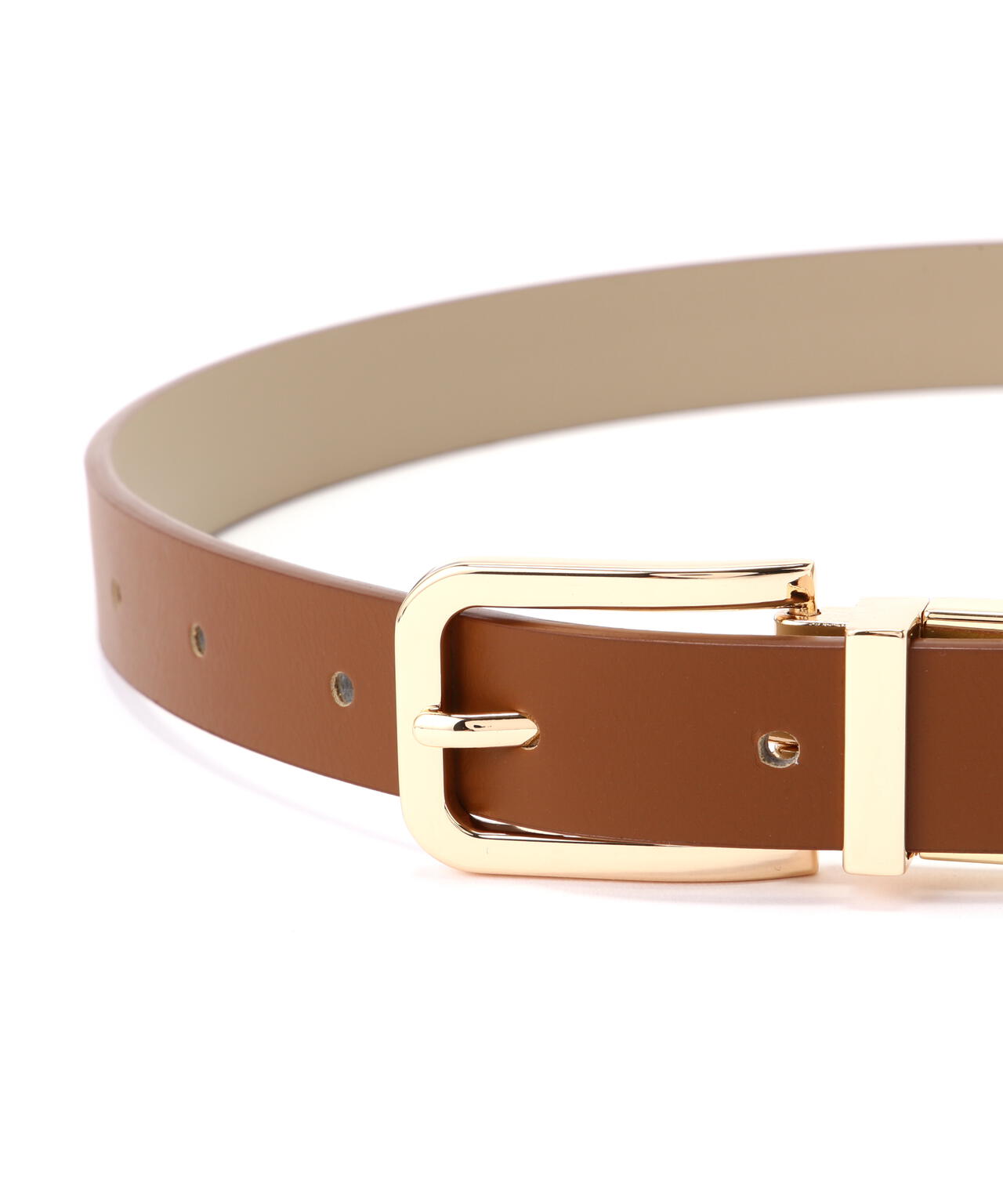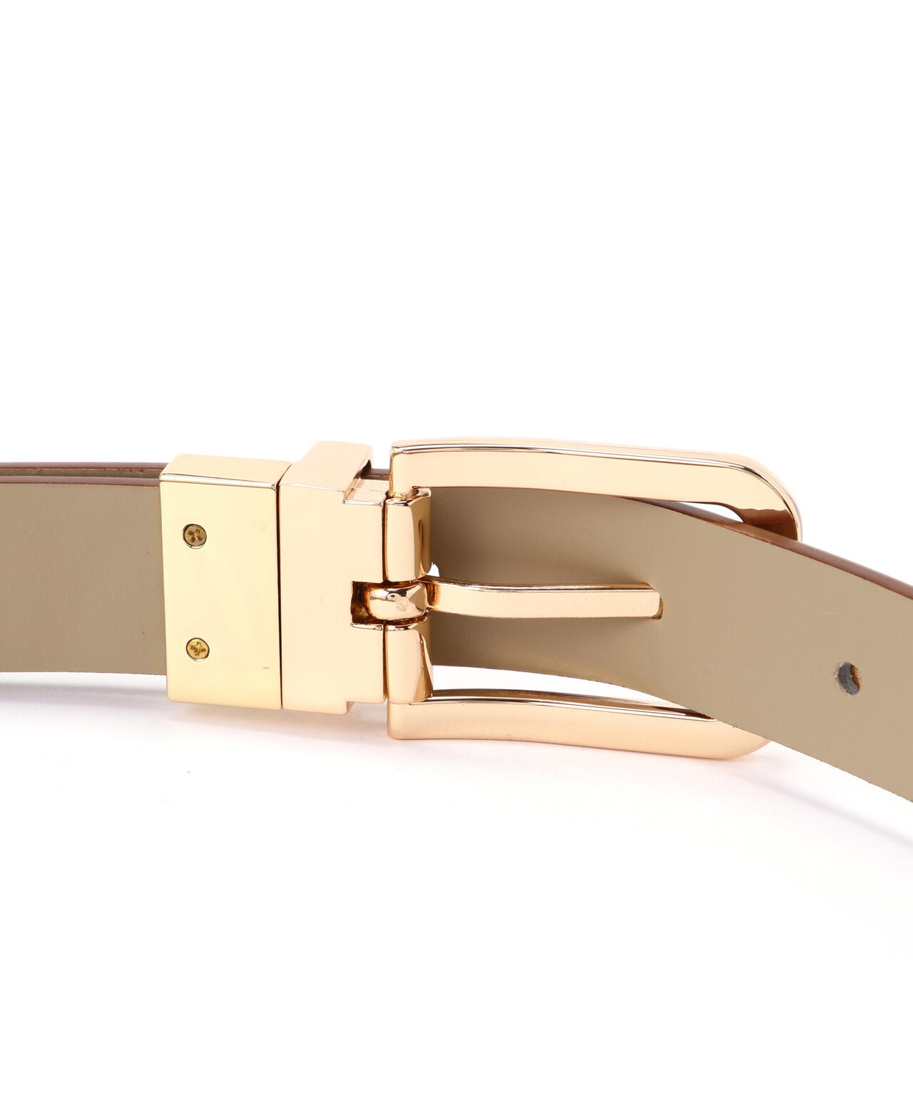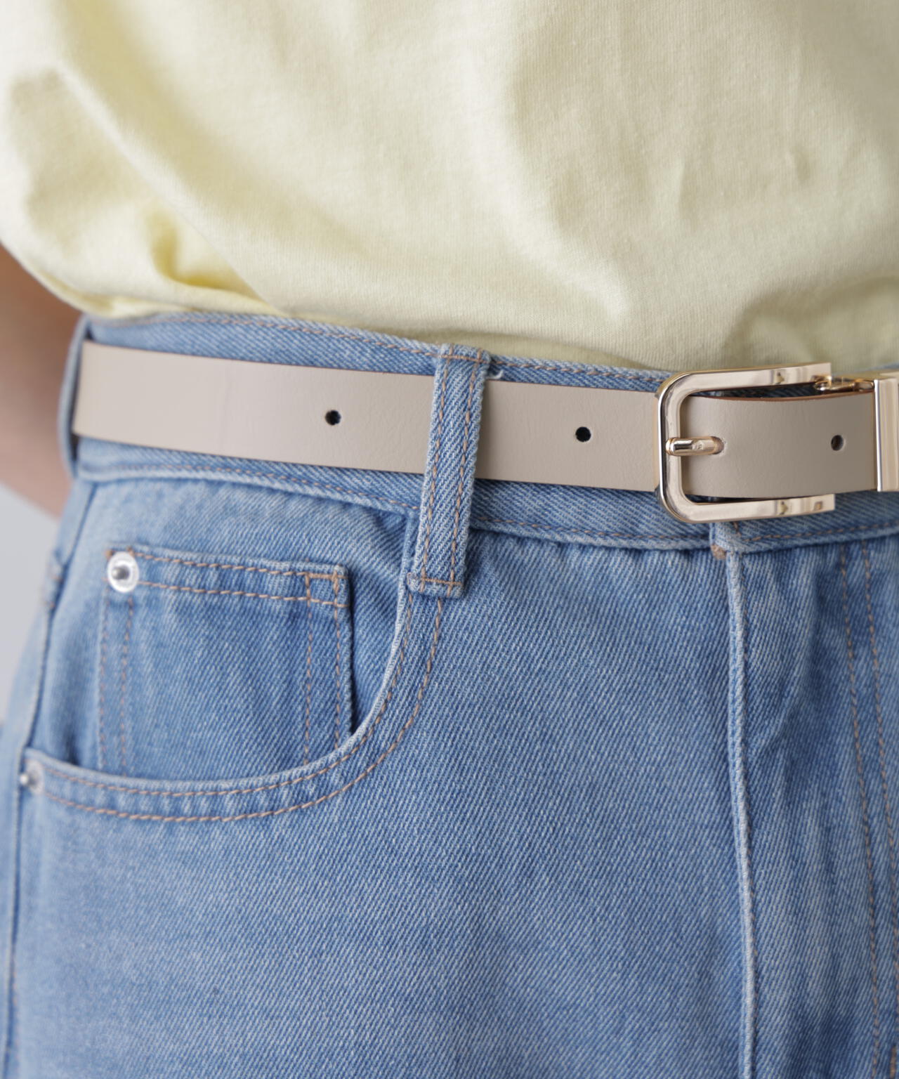 ミドル幅のシンプルなデザインとメタルバックルが、コーディネートにさり気ないアクセントを加えるベルト。リバーシブルカラーの組み合わせもおすすめポイント。お持ちのワードローブと合わせて、様々なスタイリングを楽しめます。
