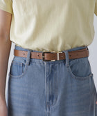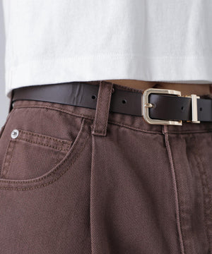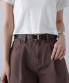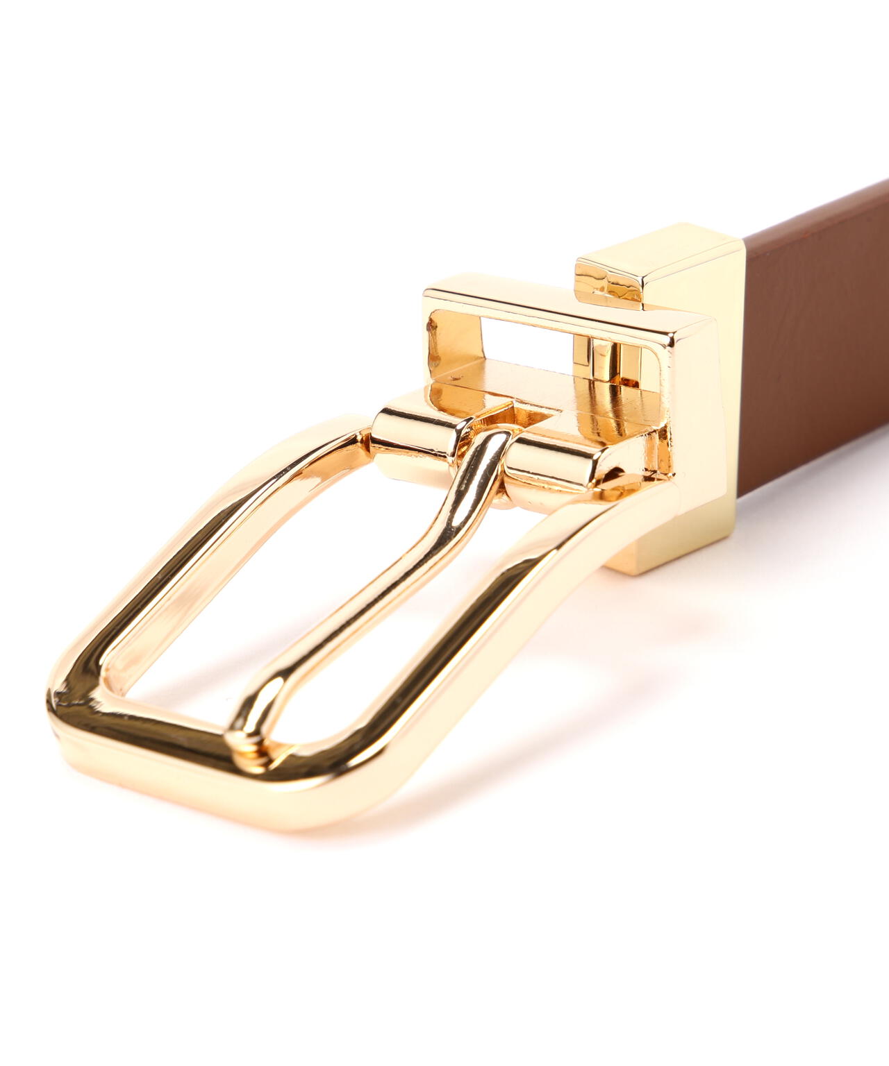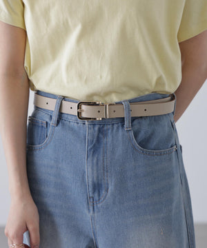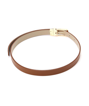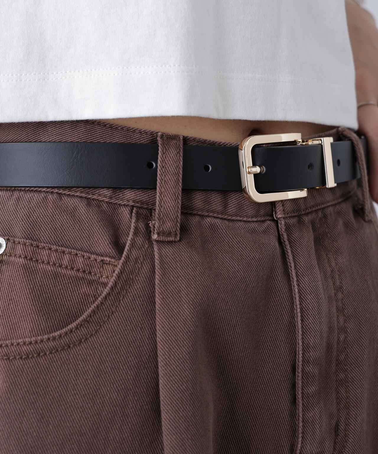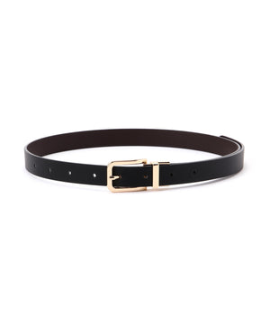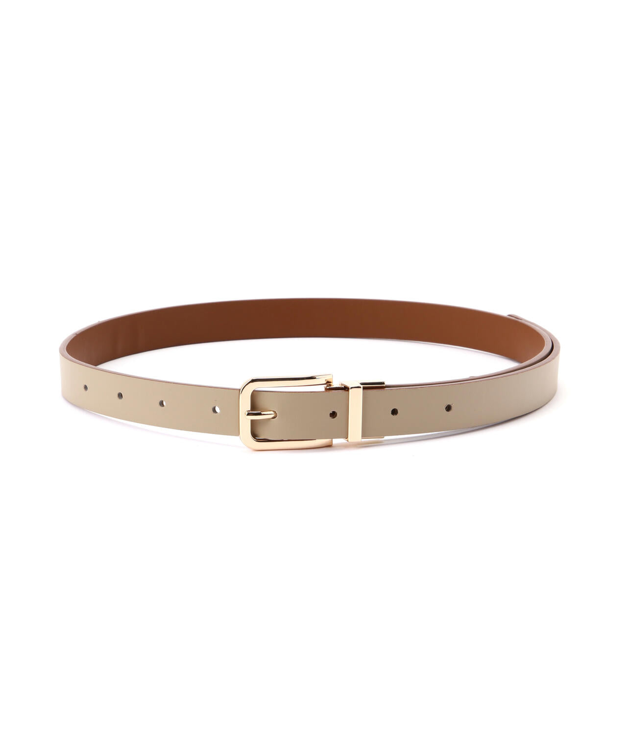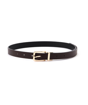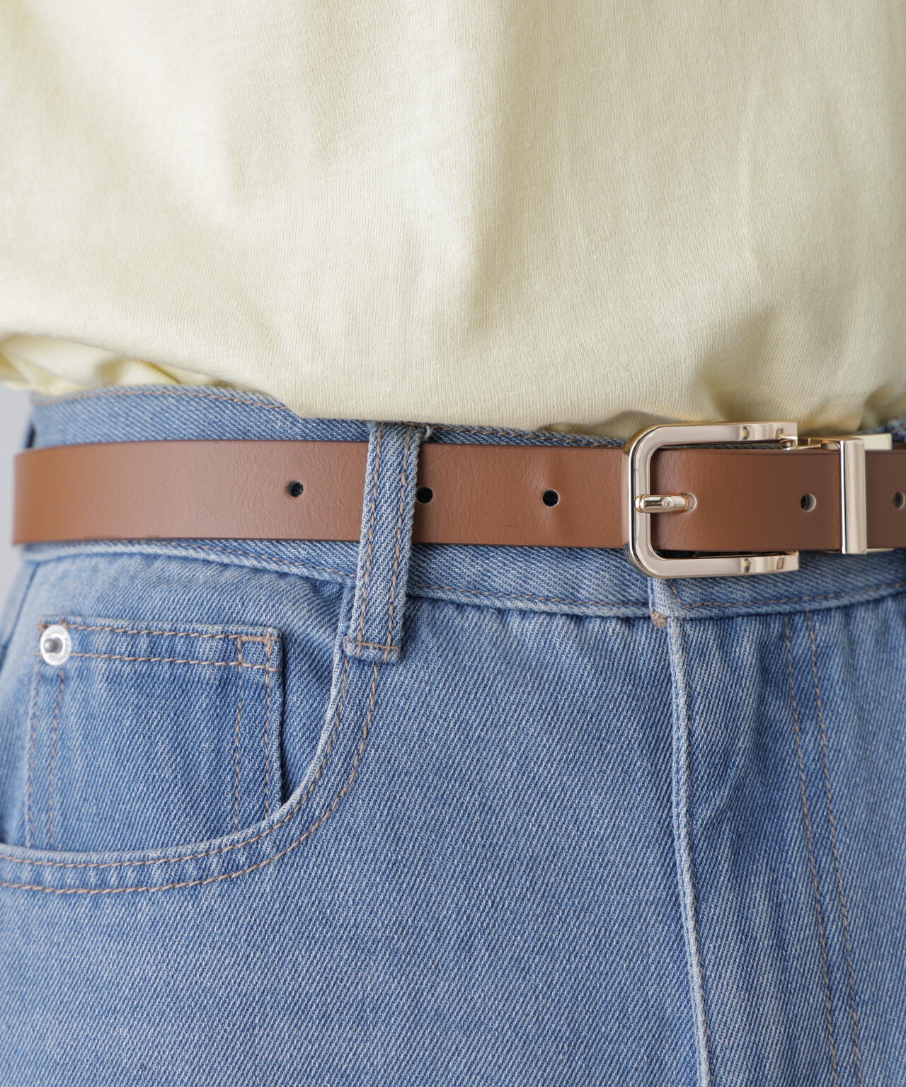 ミドル幅のシンプルなデザインとメタルバックルが、コーディネートにさり気ないアクセントを加えるベルト。リバーシブルカラーの組み合わせもおすすめポイント。お持ちのワードローブと合わせて、様々なスタイリングを楽しめます。