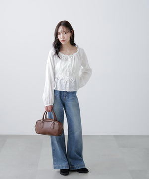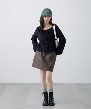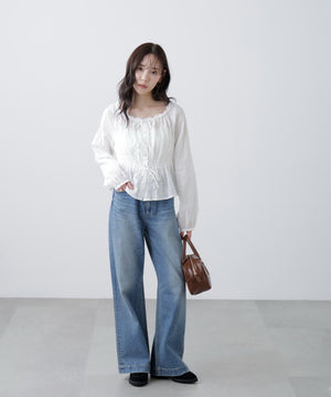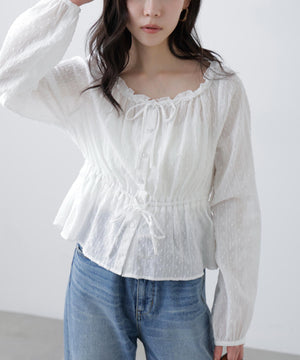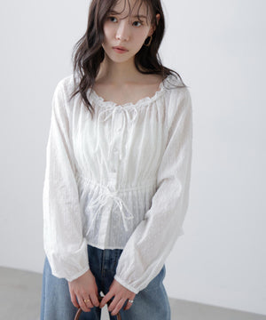 コットンレースペプラムブラウス