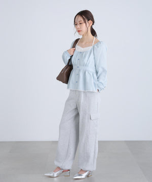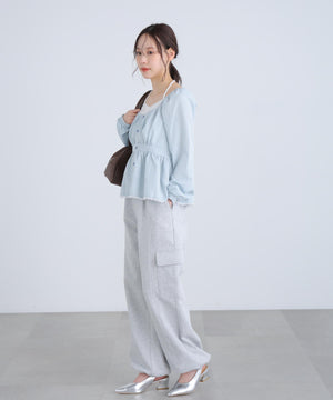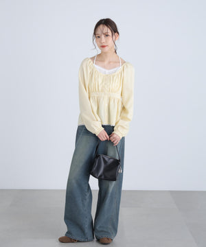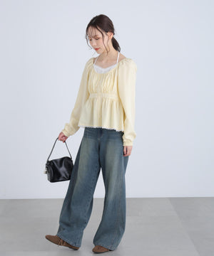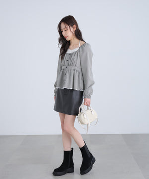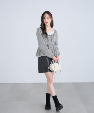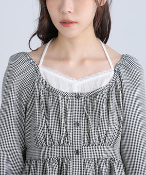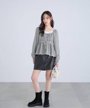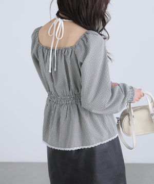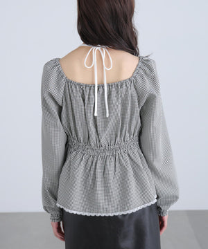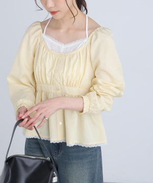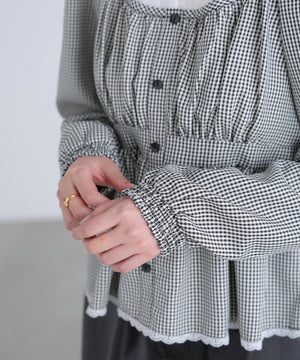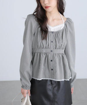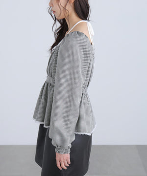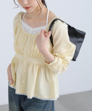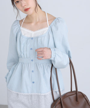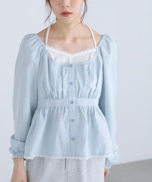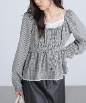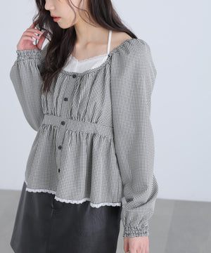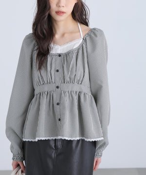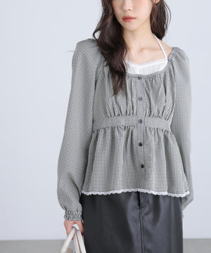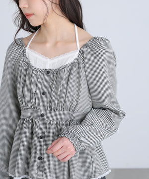 レイヤード風ギンガムチェックペプラムブラウス
