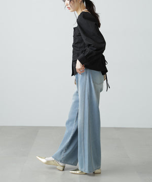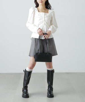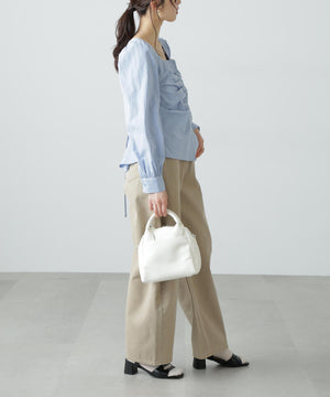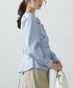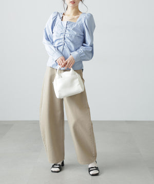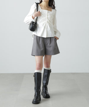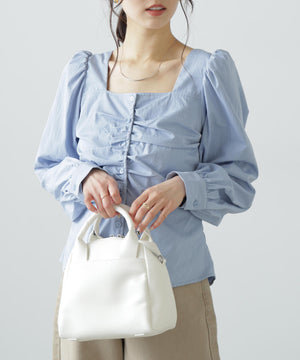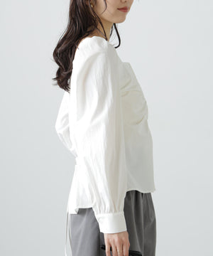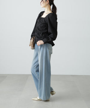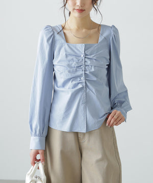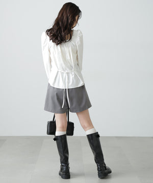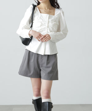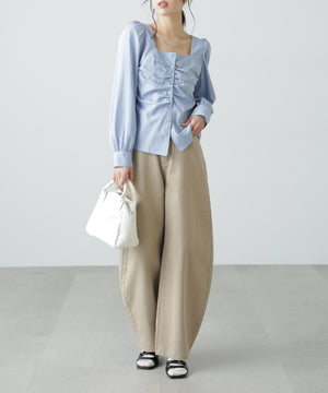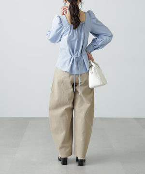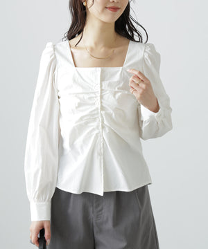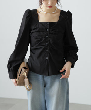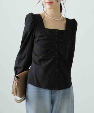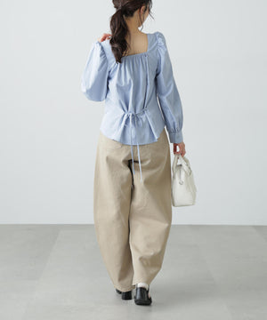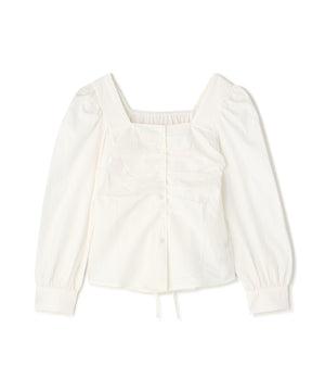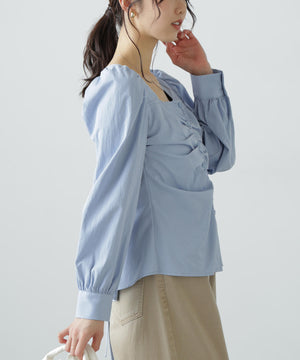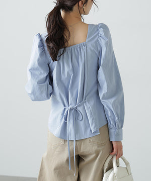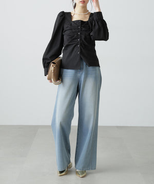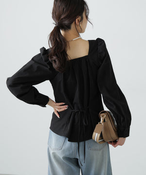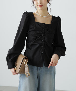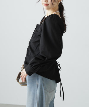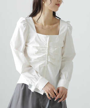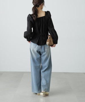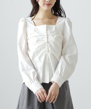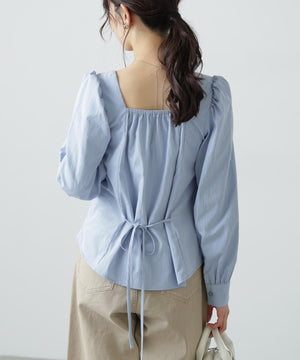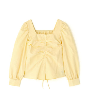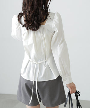 人気ブラウスが新色イエローを加えて再登場!甘めトレンドライクな韓国っぽいデザインがポイントのブラウスです。スクエアネックで顔まわりをスッキリと、胸元もキレイに見せてくれます。ギャザー入りの前開きデザインとパフスリーブが愛らしく、後ろで結ぶリボンでシルエットの変化も楽しめます。袖口のカフス仕様もデザインポイント。デニムやスラックスとのコーディネートがおすすめです。