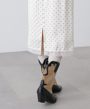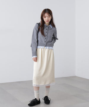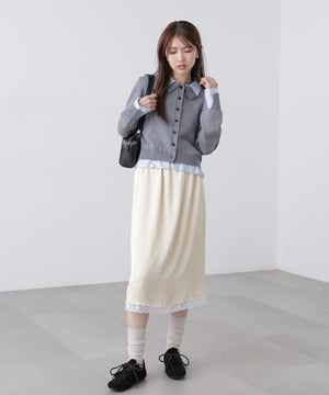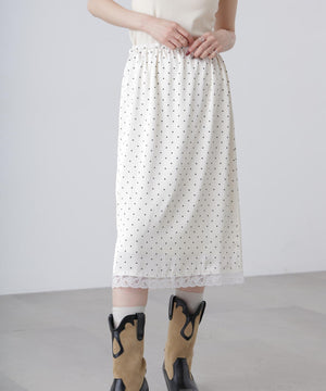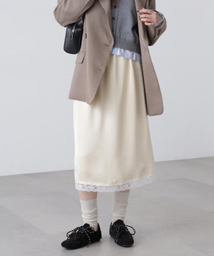 レーストリムサテンミディスカート