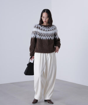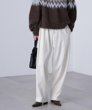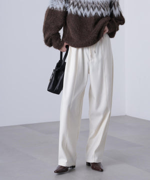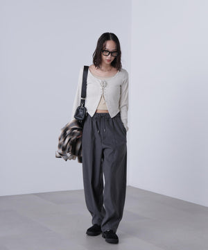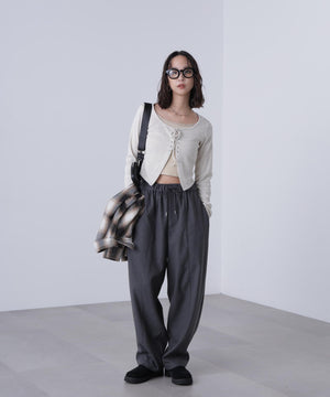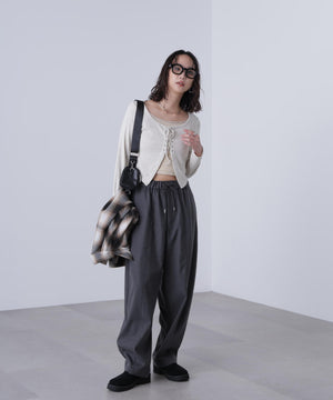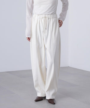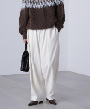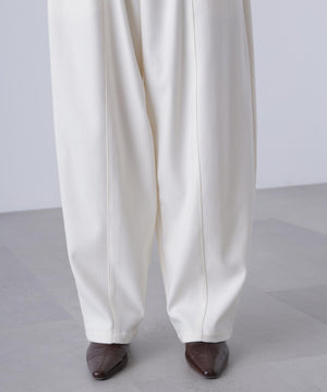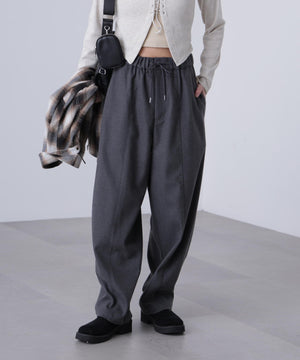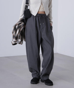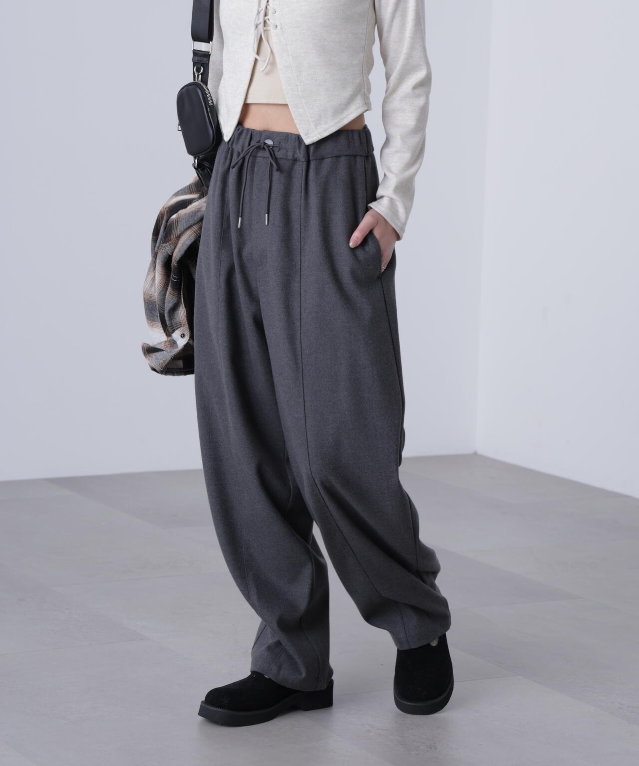 穿くだけでトレンドを叶えながら個性的な着こなしが完成するバルーンパンツ。立体感のあるカーブをつけたバルーンシルエットを演出します。シルエットを邪魔しない脇スラッシュポケット付き。ウールライクな起毛感と程よい厚みがある高見え素材を使用しています。ウエストはゴムとドロストコードでイージーな穿き心地ながら、高見え素材でラフすぎない印象に。タックインスタイルとも相性が良く、ボリュームのあるブーツやスニーカー合わせもおすすめ。どんなトップスと合わせてもトレンド感のあるスタイリングが完成します。