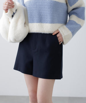 ロングシーズン着られる生地感のショートパンツ。程よいハリ感のある生地と後ろウエストゴム仕様で、快適なはき心地です。短めの股下丈が脚を長く見せ、すっきりと着られるデザイン。同素材のジャケット(ブランド品番1316150200)とのセットアップはもちろん、単品使いもできます。ミニワンピースのインナーパンツとしてもおすすめです。コーディネート次第でカジュアルにもレディライクにも着回せます。