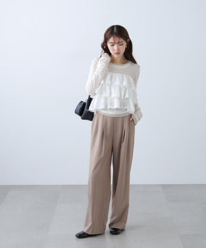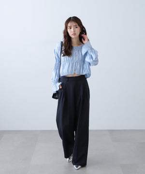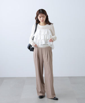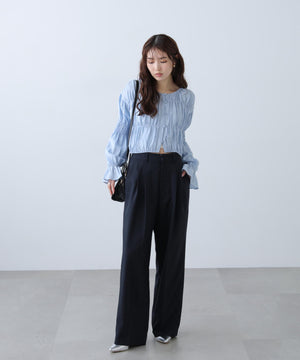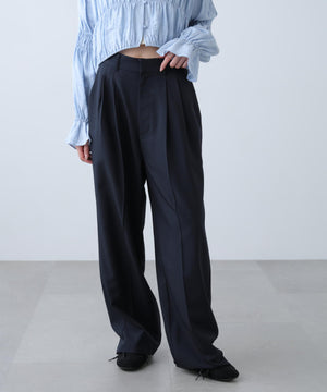 [低身長サイズ/Sシリーズ]梳毛調合繊タックワイドパンツ