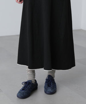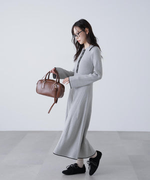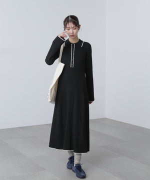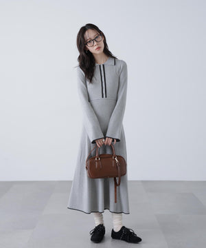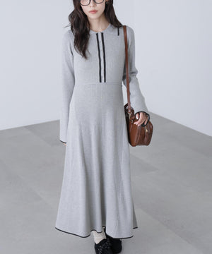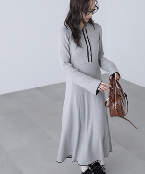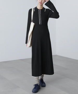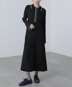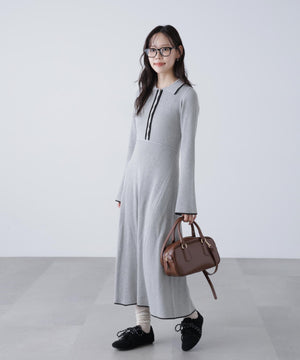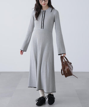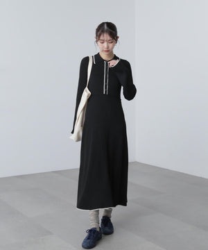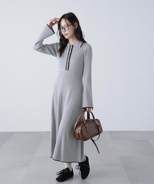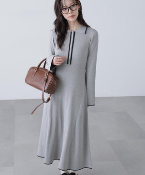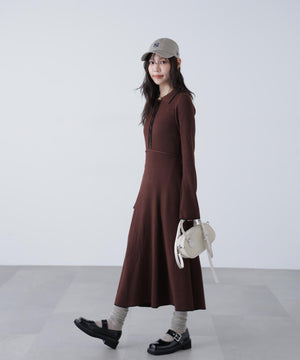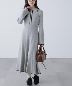 トレンドのポロ襟がかわいいリブニットフレアワンピース。しっかとしたリブ編みながらも、柔らかな伸縮性があるので、体のラインをキレイに見せてくれます。脇は三角パネル入り、裾にかけて広がるフレアシルエットがレディライクな印象を叶えます。前身頃のウエストラインを高めにしてスタイルアップ見えに。襟元や前立て、裾の配色ラインがアクセントになり、一枚でコーディネートが完成します。ジャケットやブルゾン、コートを羽織ると、季節感のあるスタイルが楽しめます。足元はスニーカーでカジュアルに、ブーツと合わせてキレイめにまとめるのもおススメです。